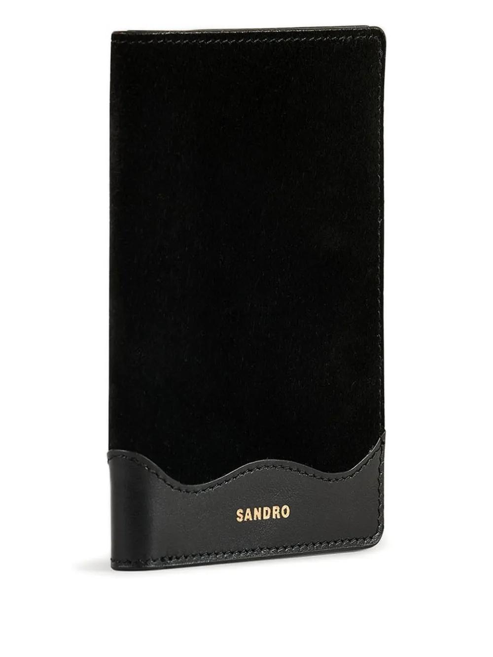 brown suede leather curved panel calfskin leather base multiple card slots internal pocket