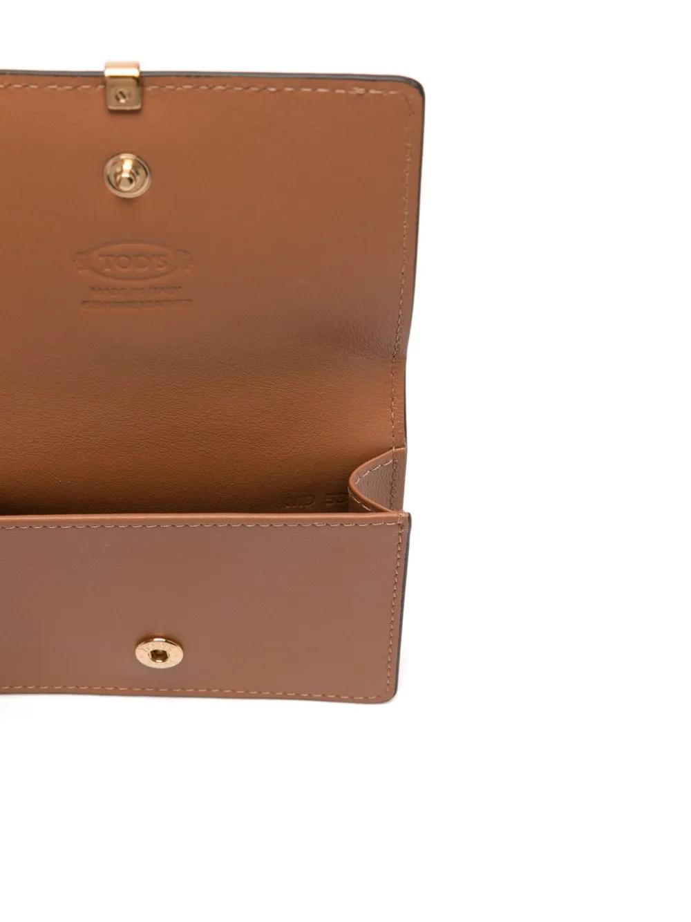 light brown gold-tone hardware top flap press-stud fastening stitched edges rectangular shape