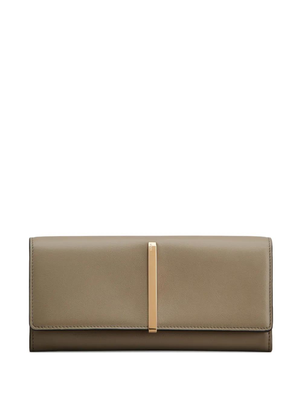 beige leather gold-tone detail flap fastening card slots zip fastening