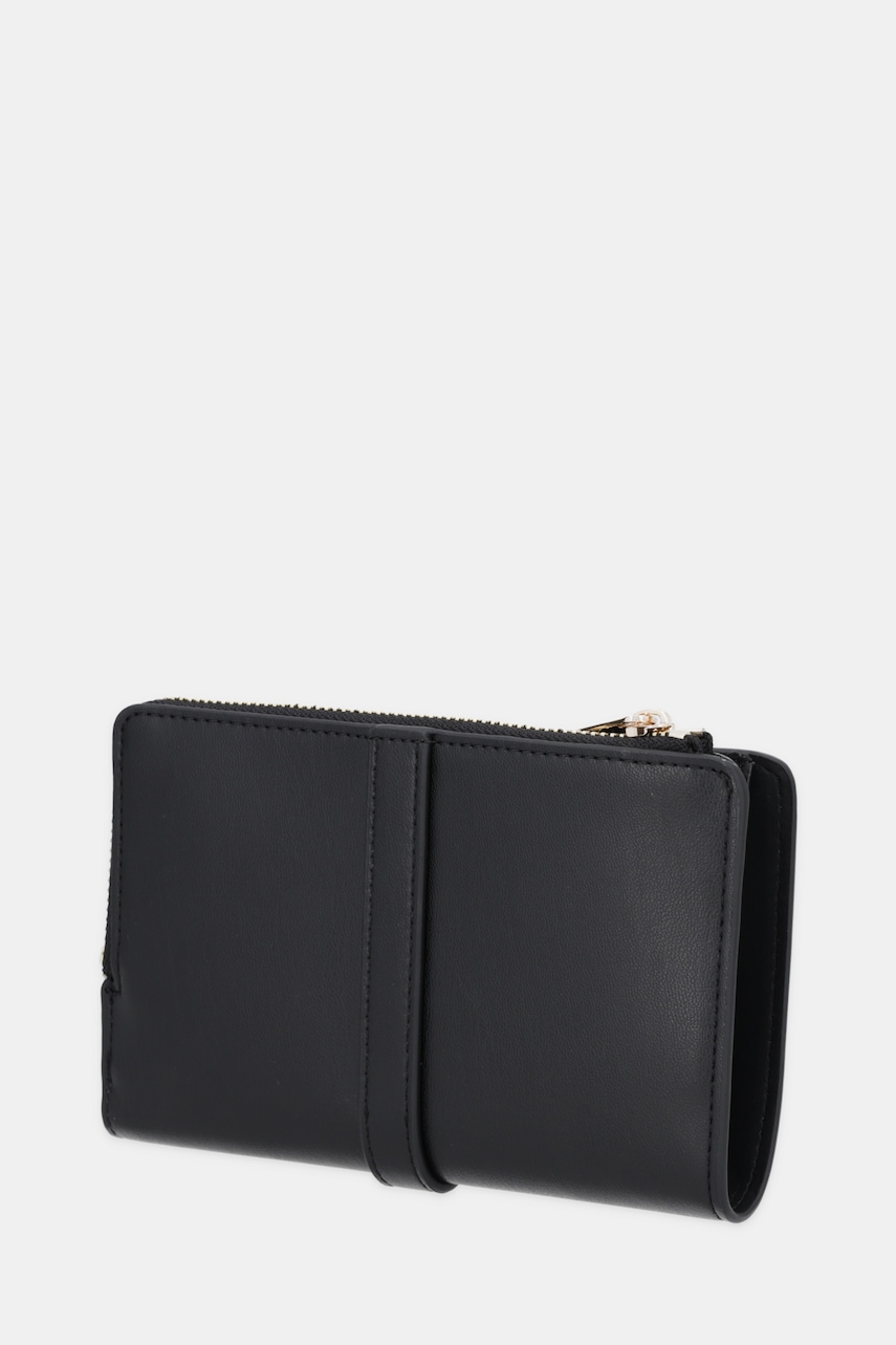 - Model zapakowany w pudełko firmowe. - Klapa zapinana na zatrzask. - Kieszeń na bilon zapinana na zamek. - Przegrody na banknoty. - Liczba przegródek na karty: 8. - Model z ozdobną aplikacją. - Wysokość: - Głębokość: 1,5 cm. - Wymiary: 16 x 10,3 cm.