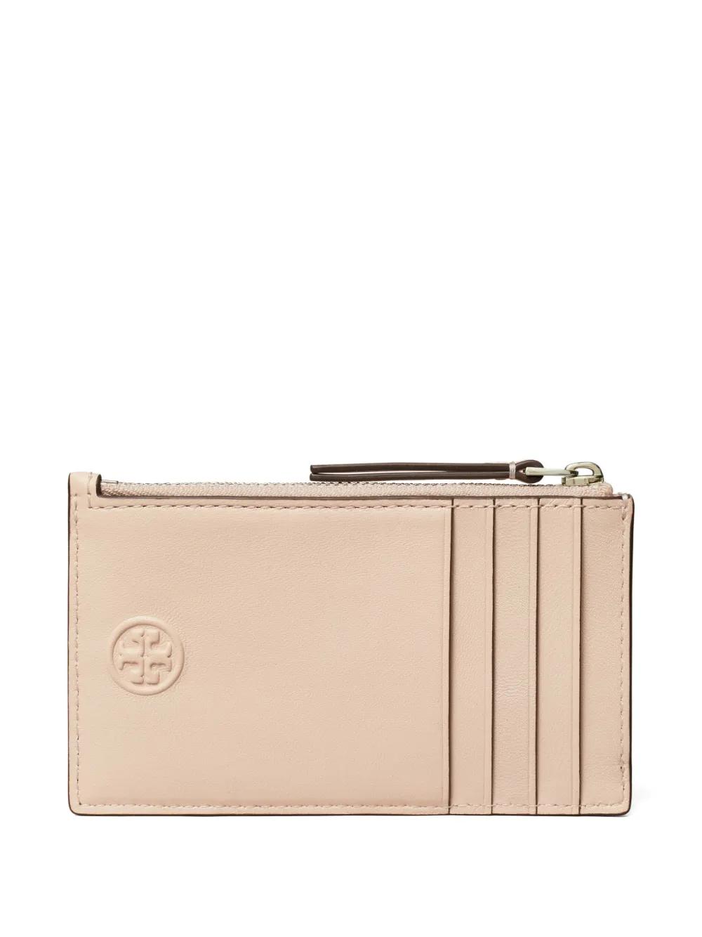 light pink diamond quilt pattern zip pocket multiple card slots logo detail