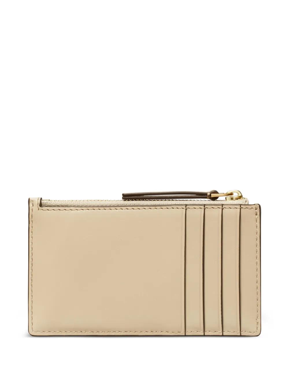 beige diamond quilting zip fastening logo detail multiple card slots leather