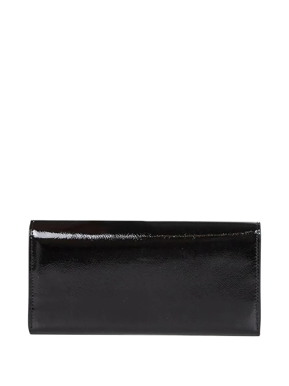 black silver-tone hardware foldover top three internal compartments six internal card slots