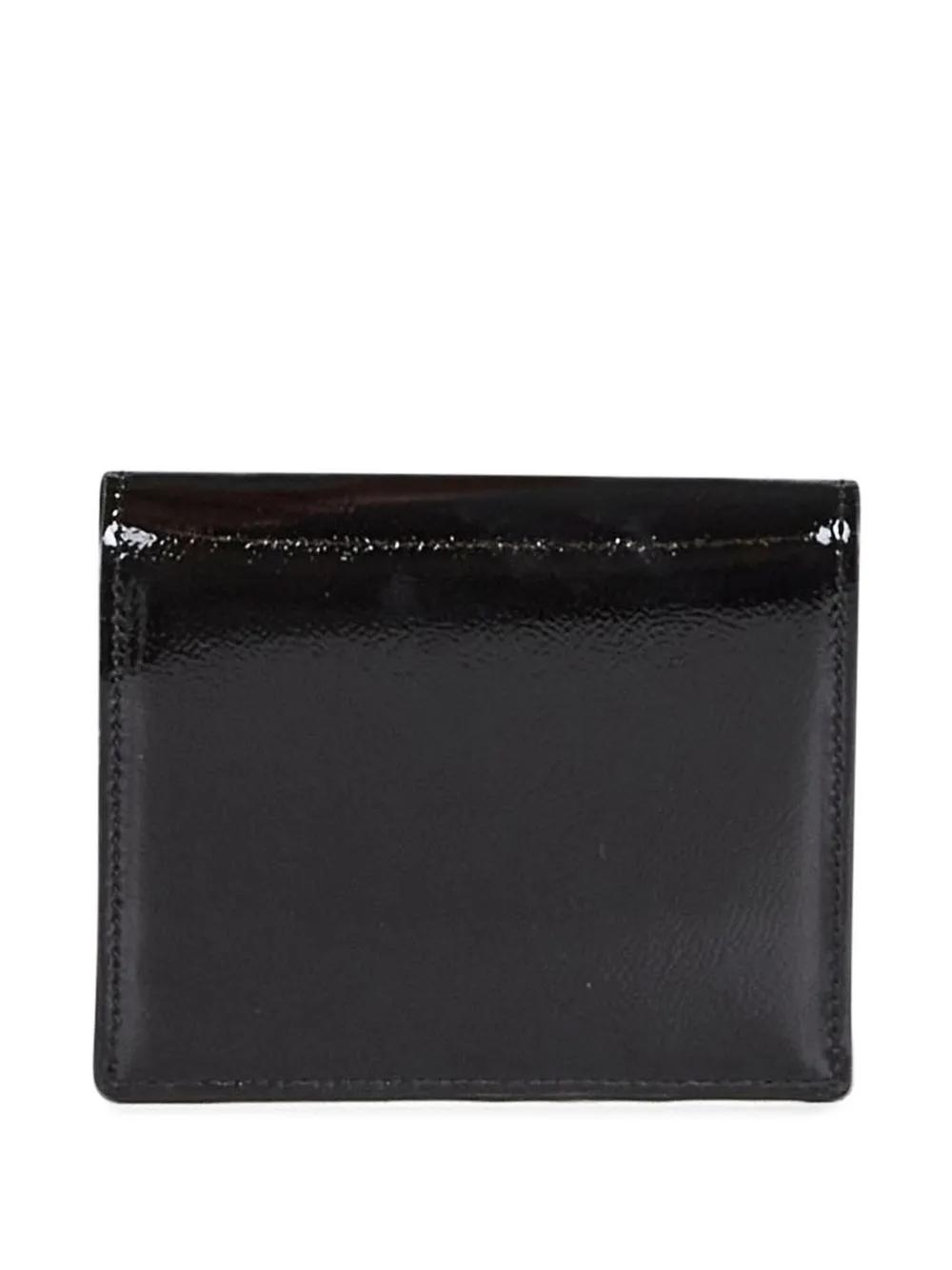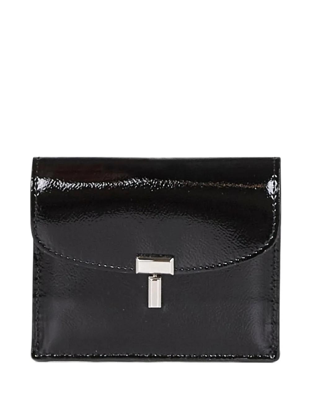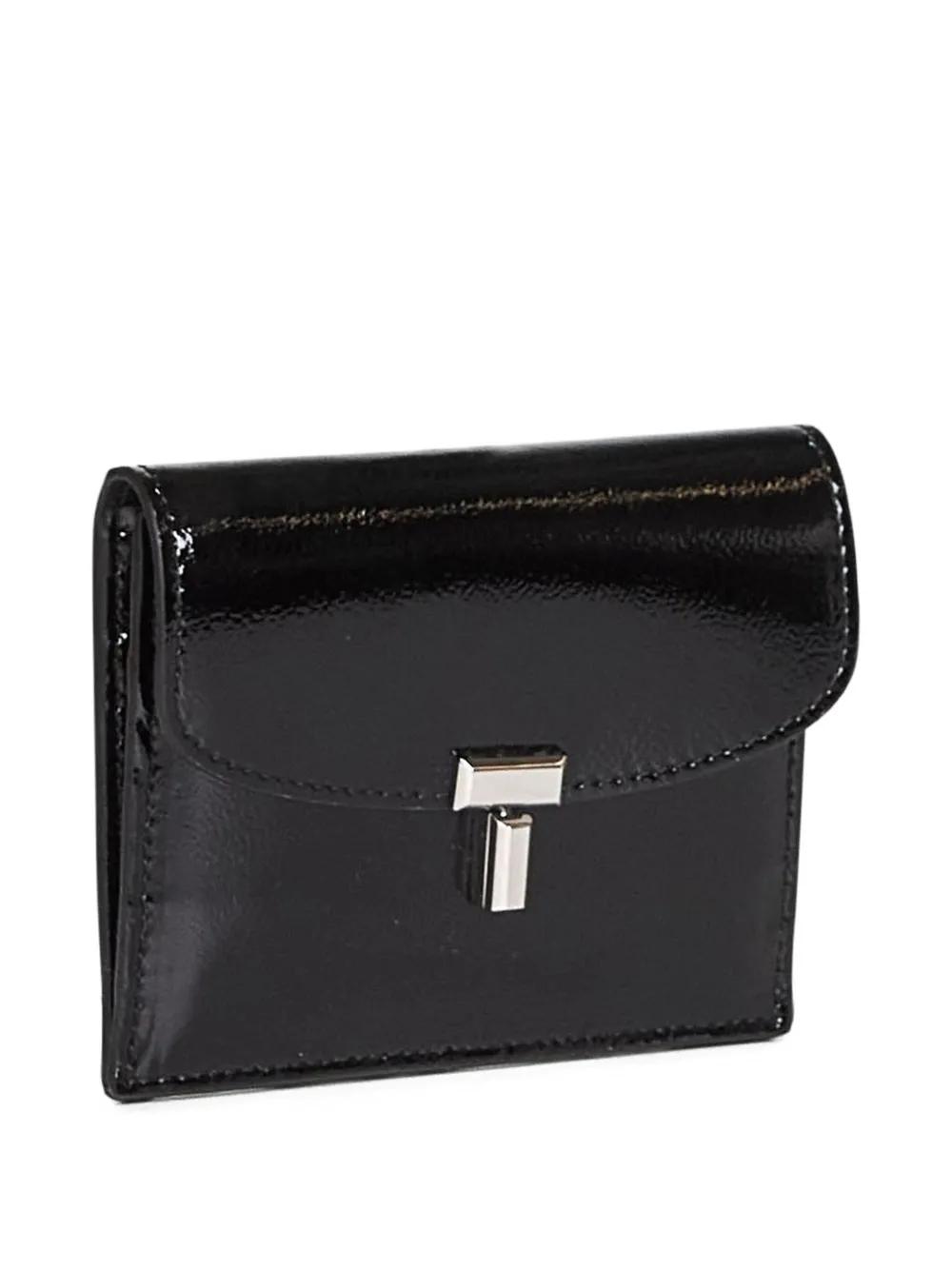 black crinkled design metal T-lock clasp two main compartments four internal card slots silver-tone hardware