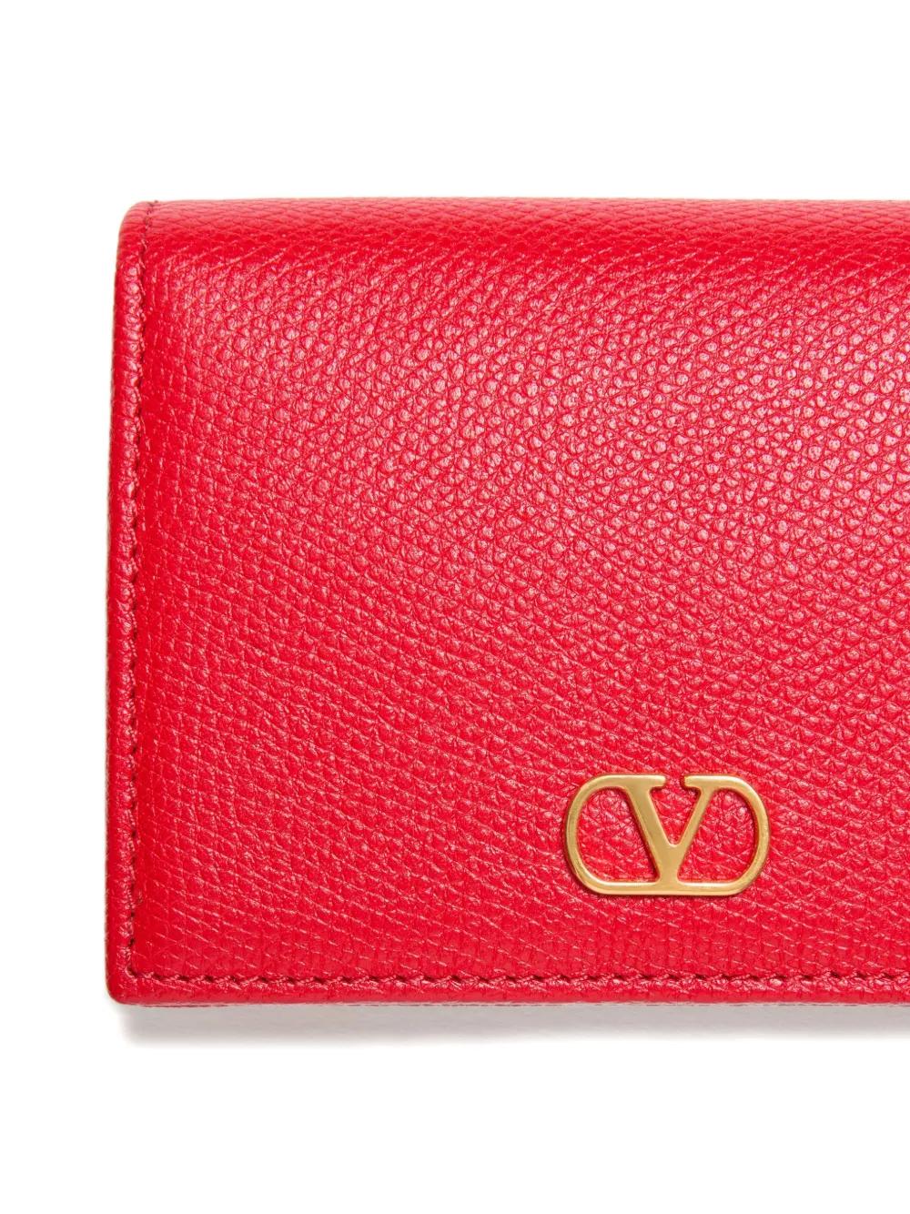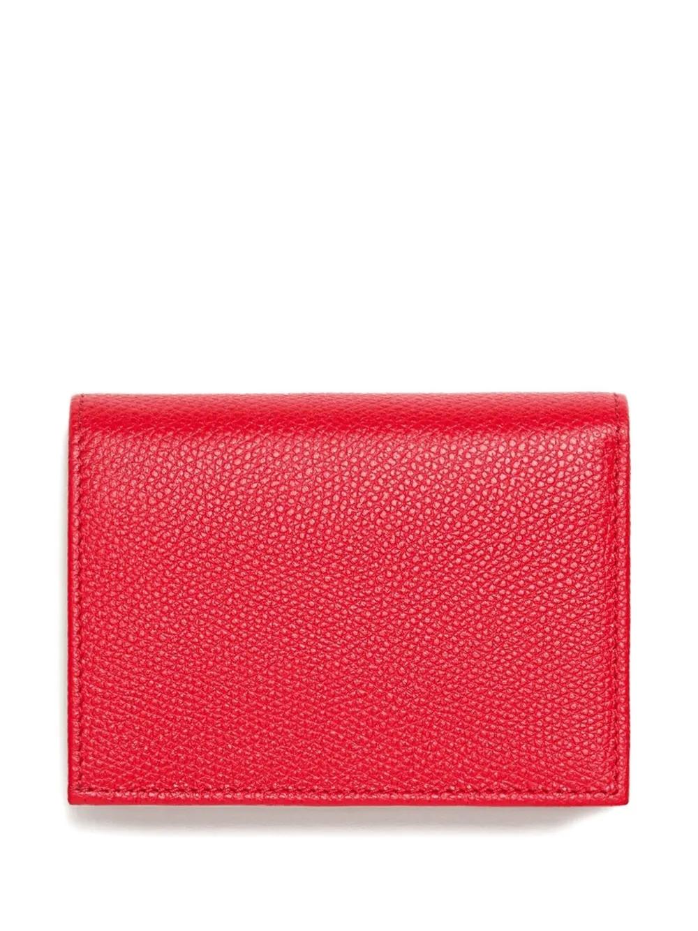 red grained finish gold-tone hardware VLogo detail press-stud closure internal card slots
