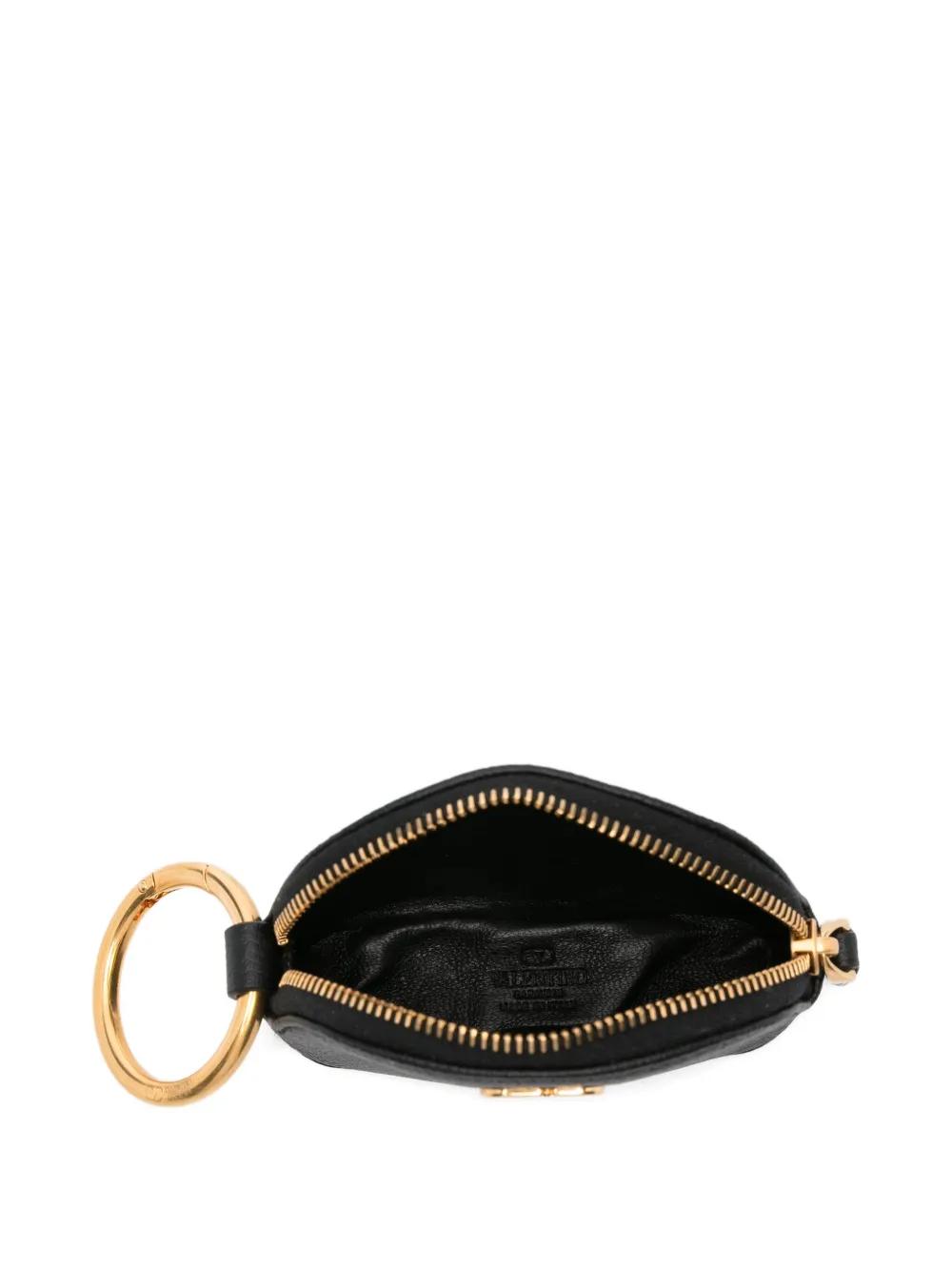 Valentino Ready To Wear black calf leather gold-tone logo zip fastening half-moon shape keyring attachment