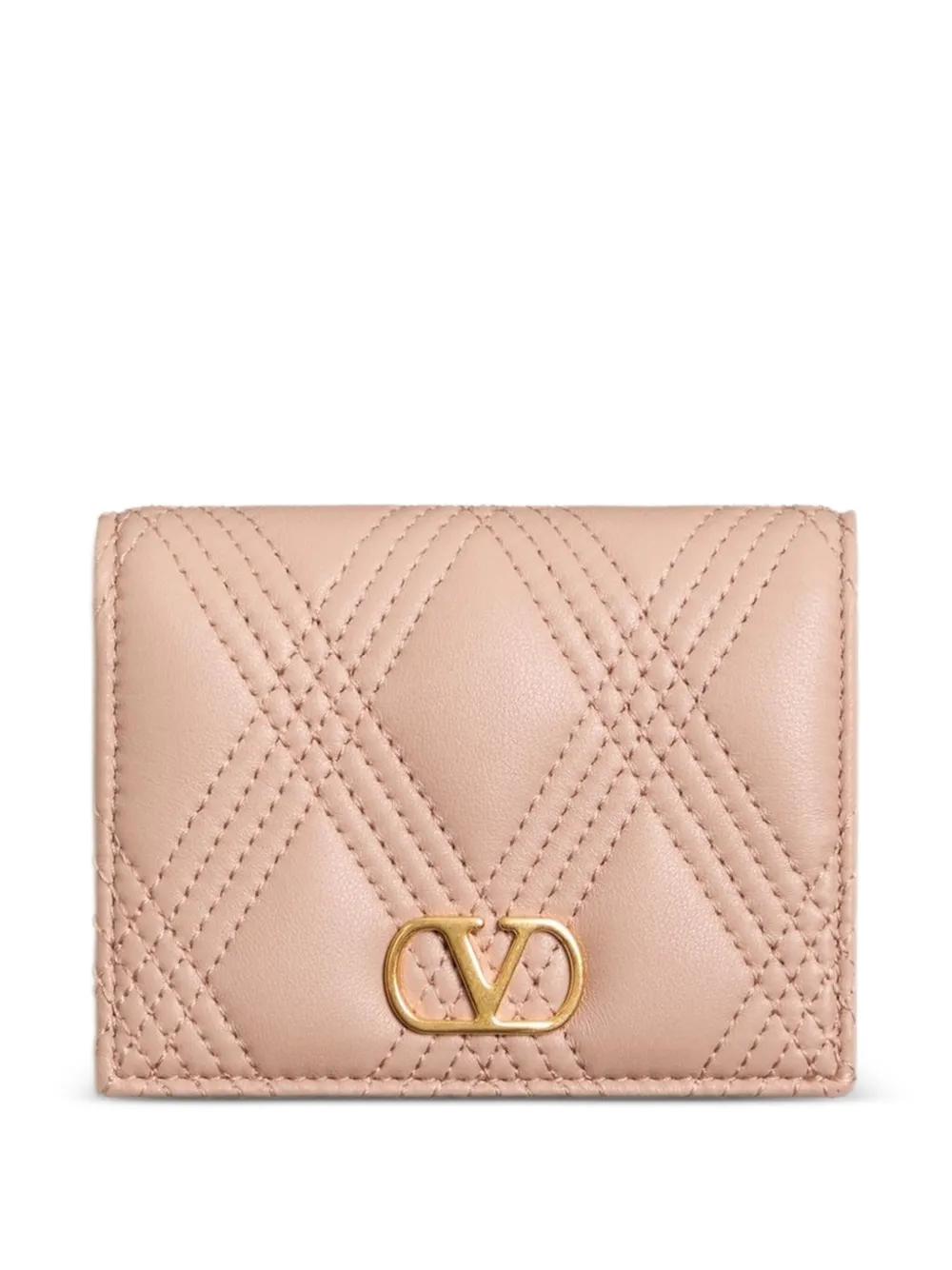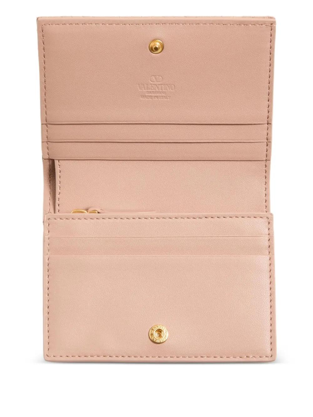 pink foldover top with press-stud fastening internal card slots debossed internal logo VLogo Signature