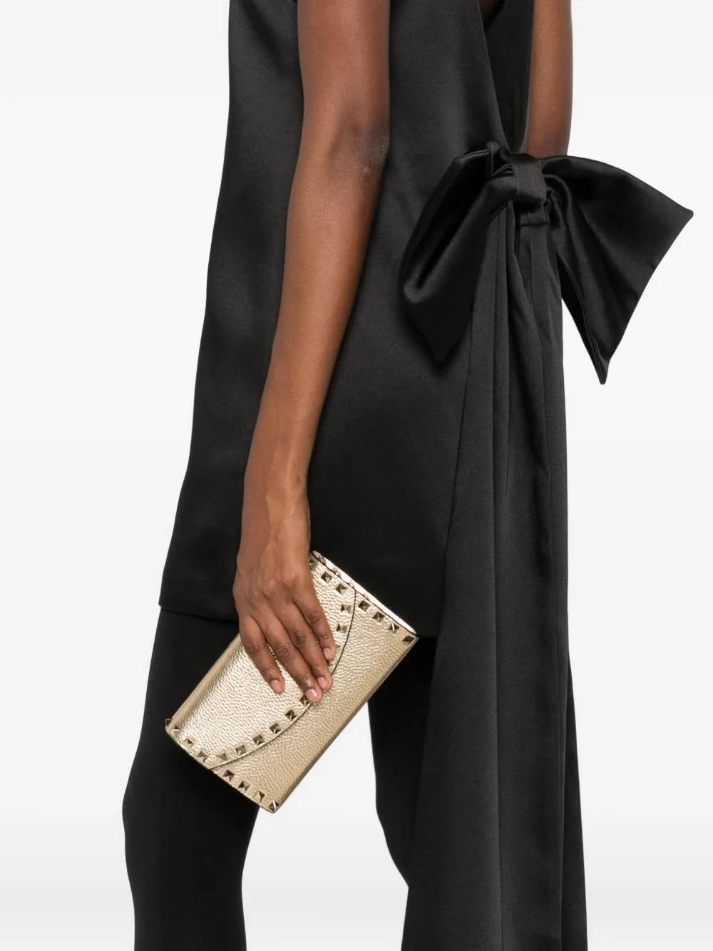gold textured finish chain shoulder strap decorative studs flap closure internal card slots