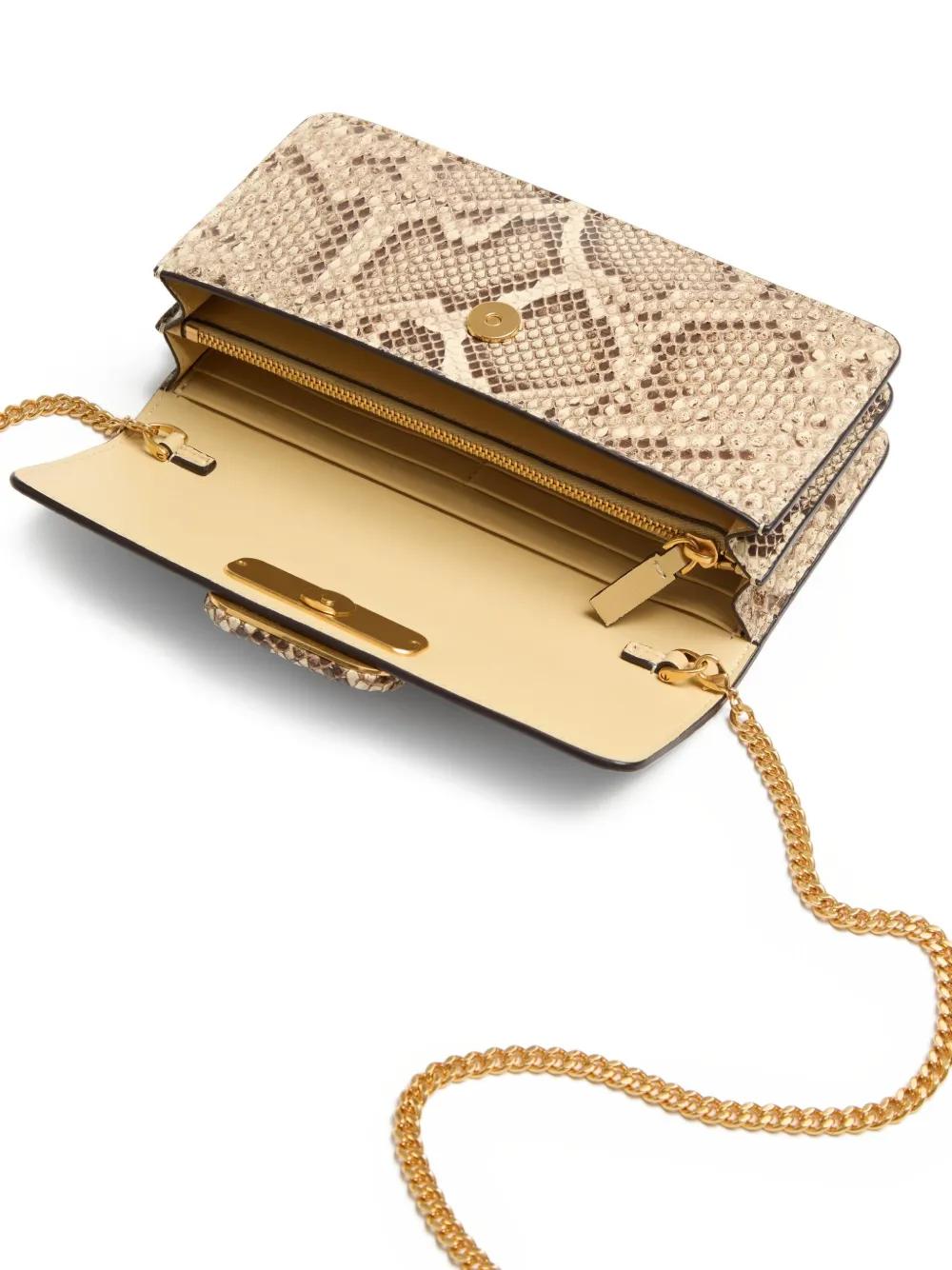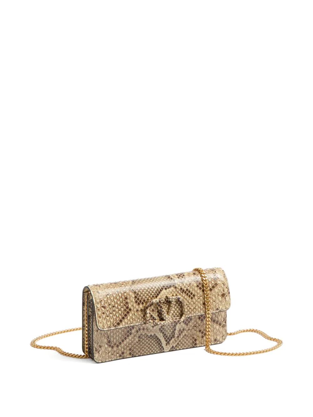 beige leather snakeskin-effect foldover top with magnetic fastening detachable chain-link shoulder strap VLogo Signature partitioned compartment internal zip-fastening pocket This item comes from our partner boutiques in a variety of countries and cannot be shipped outside its region (either US, UAE, or the EU & UK). Please check the country of origin in the Shipping & Free Returns tab or your Shopping Bag to make sure it can be delivered to your location.