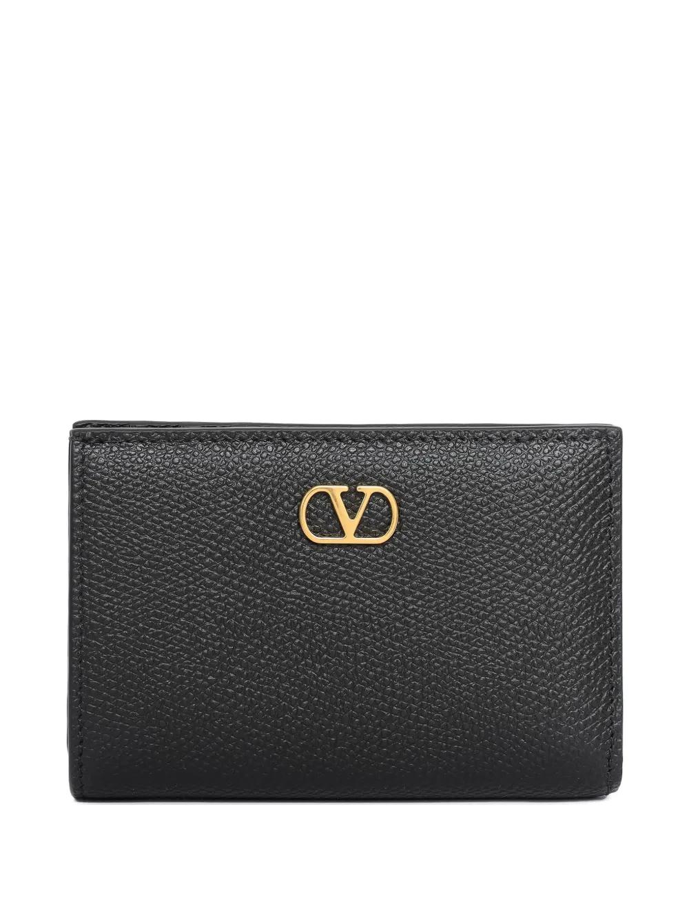 black grained texture VLogo Signature plaque all-around zip fastening multiple card slots concealed press-stud fastening