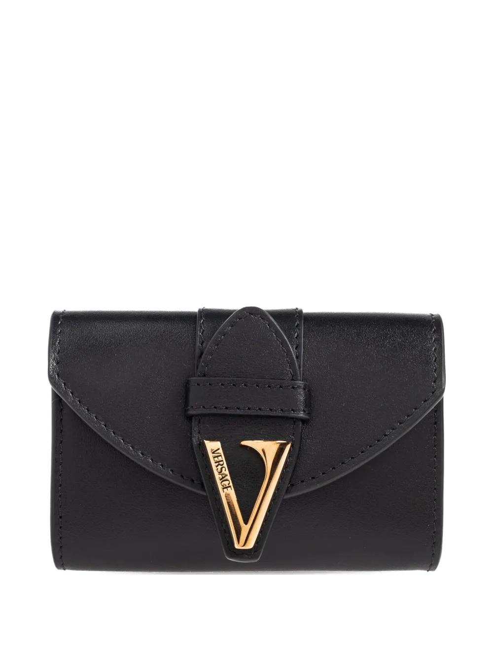 black calf leather gold-tone logo buckle detail press-stud fastening internal logo stamp
