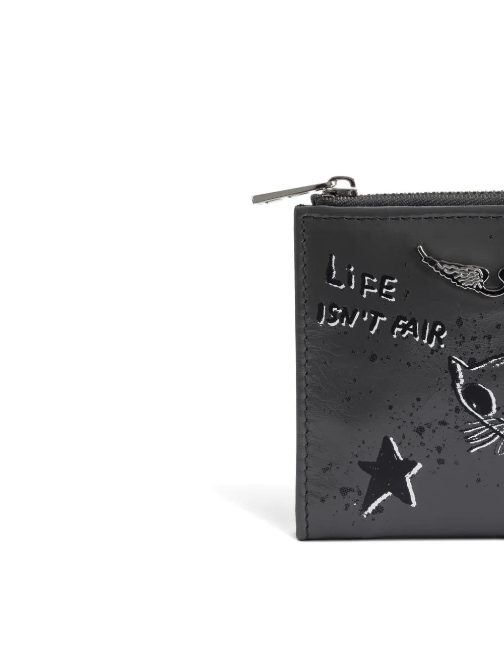 grey zip fastening graphic print press-stud fastening internal slip pocket