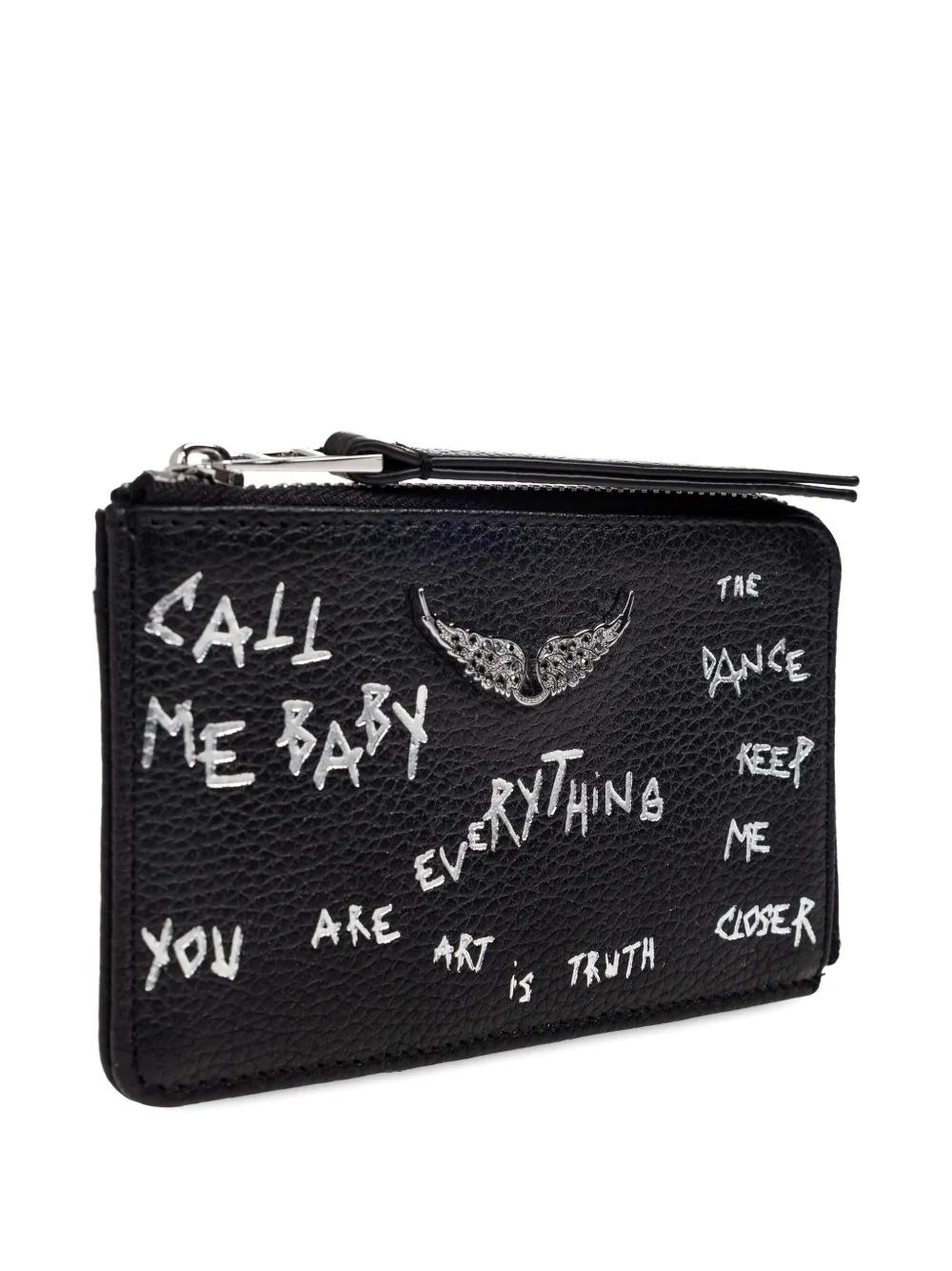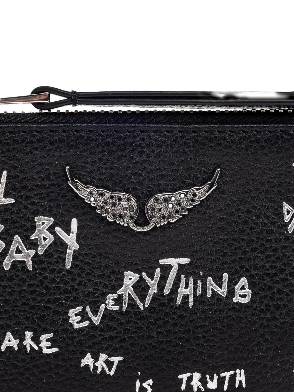 black wings detail zip fastening card slots
