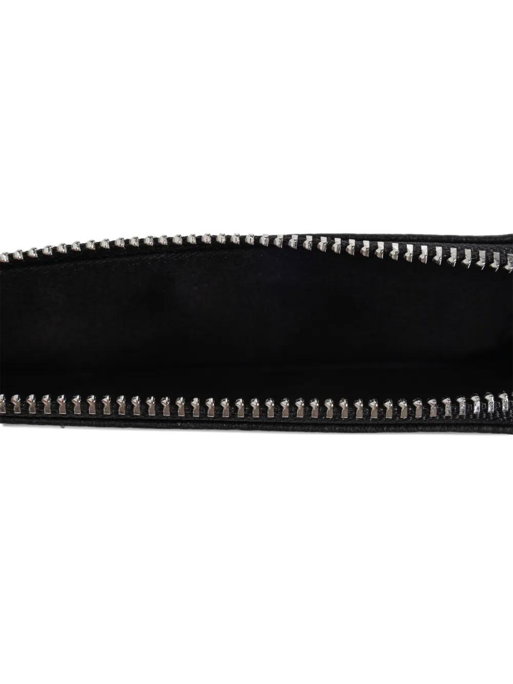 black quilted leather zip fastening silver-tone logo card slots