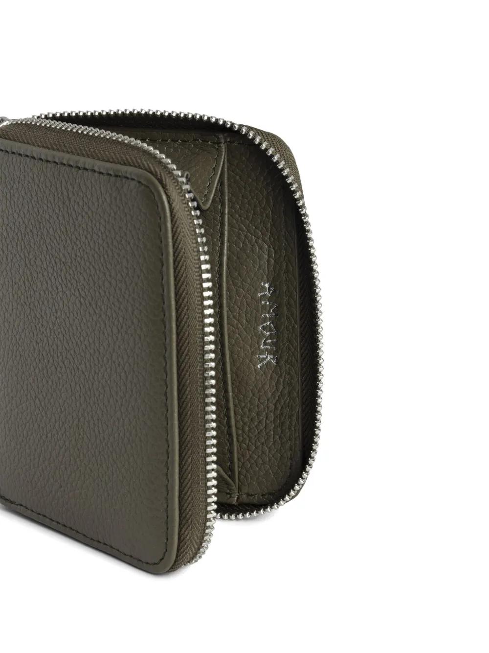 moss green calf leather pebbled texture all-around zip fastening wings-logo charm full lining partitioned compartment
