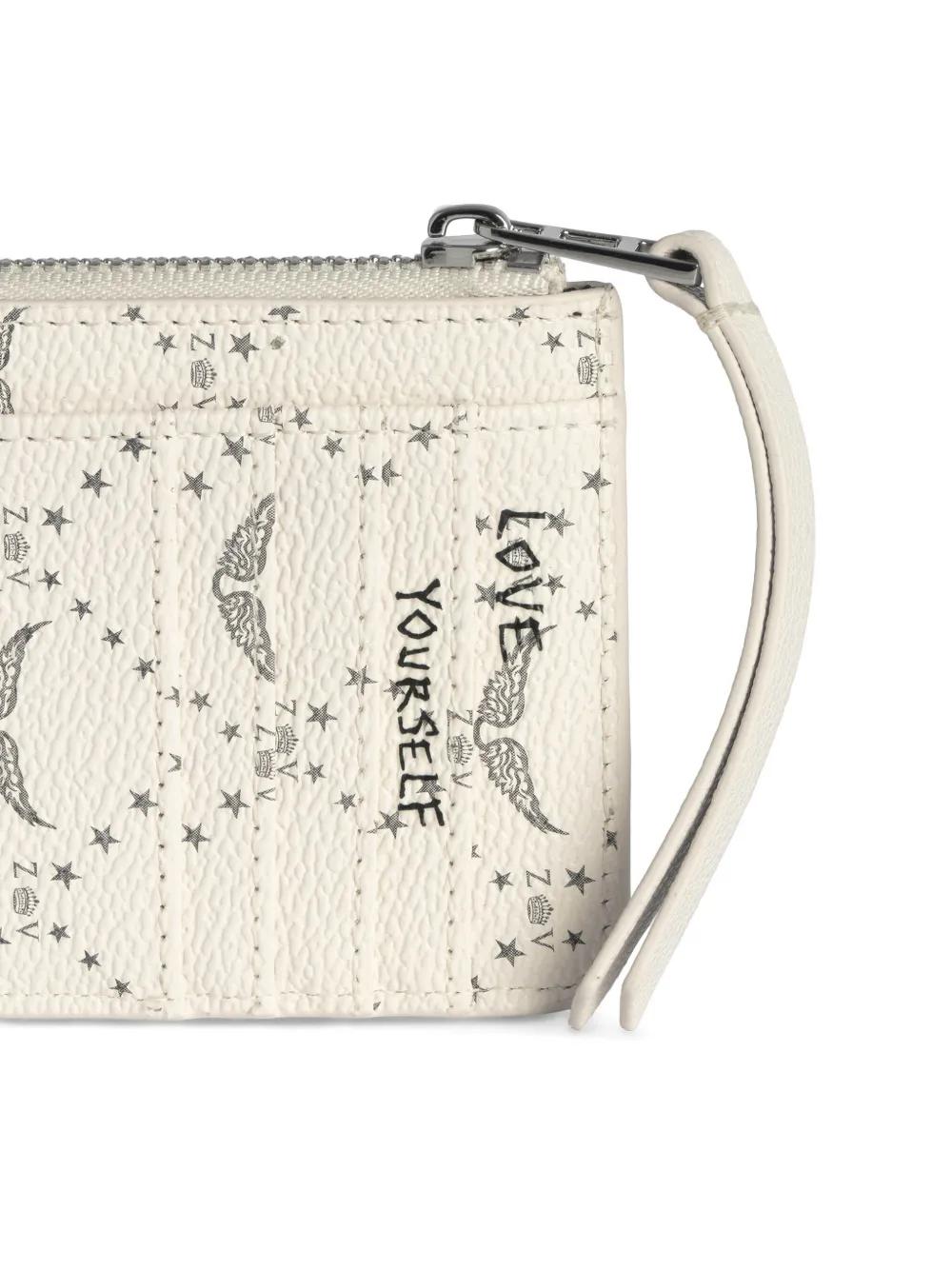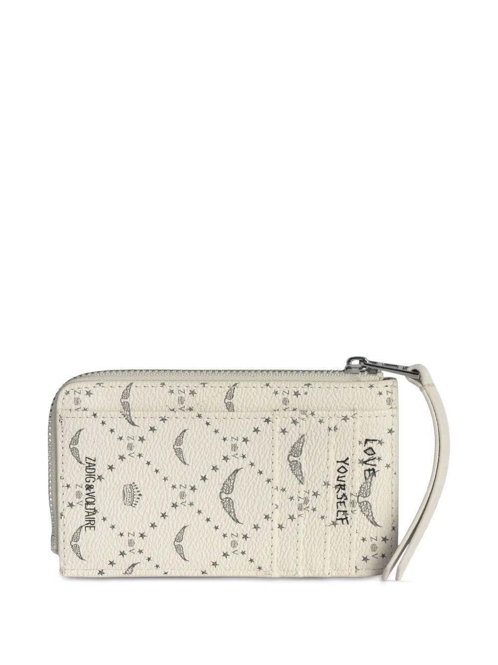 moss green calf leather pebbled texture wings-logo charm zip-fastening compartment four rear card slots 'Love Yourself' stamp to the rear debossed logo to the rear