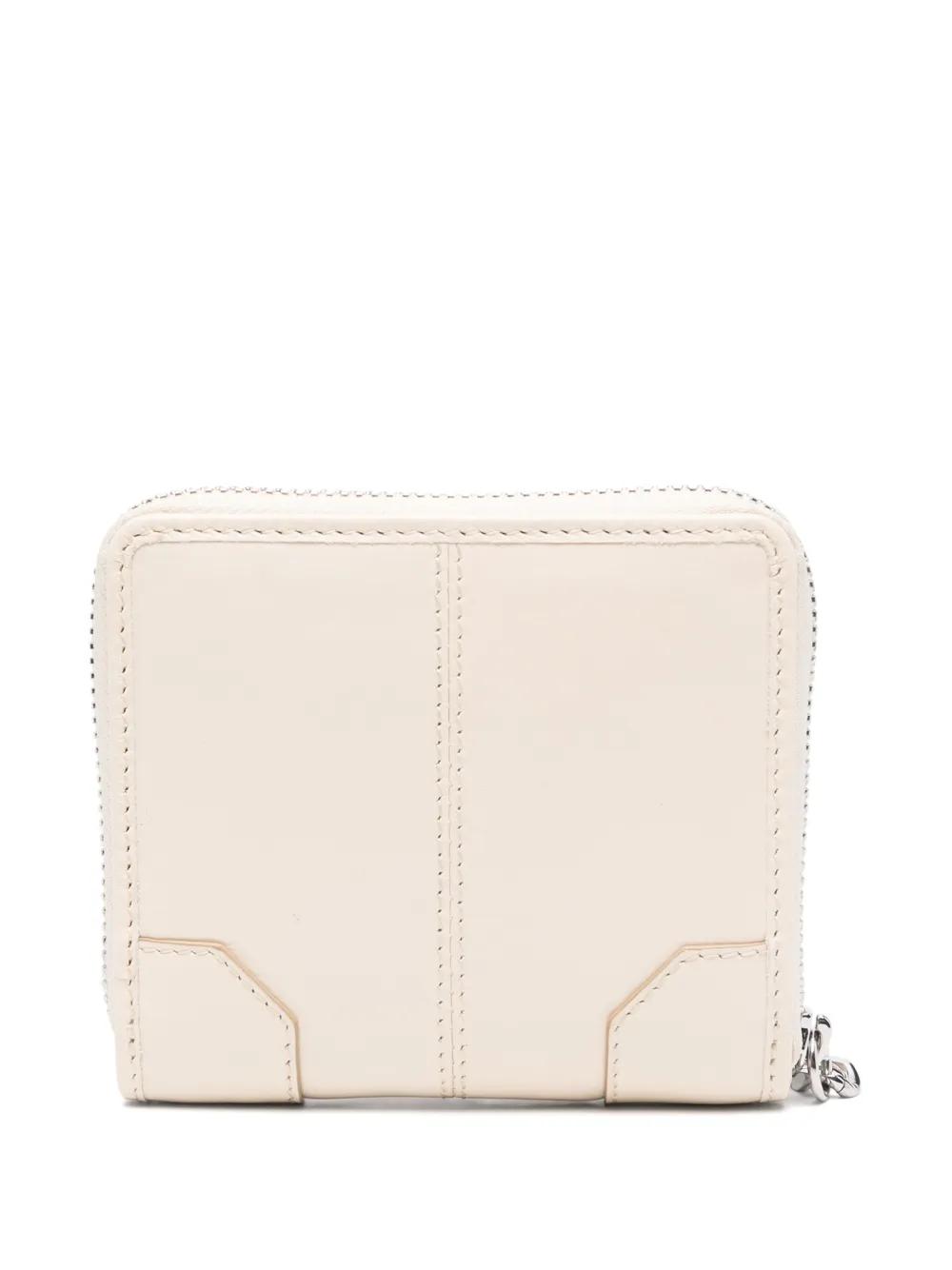 ivory white calf leather crinkled finish panelled design logo pendant logo plaque single card slot to the front internal card slots internal coin pocket internal note compartments debossed internal logo silver-tone hardware all-around zip fastening