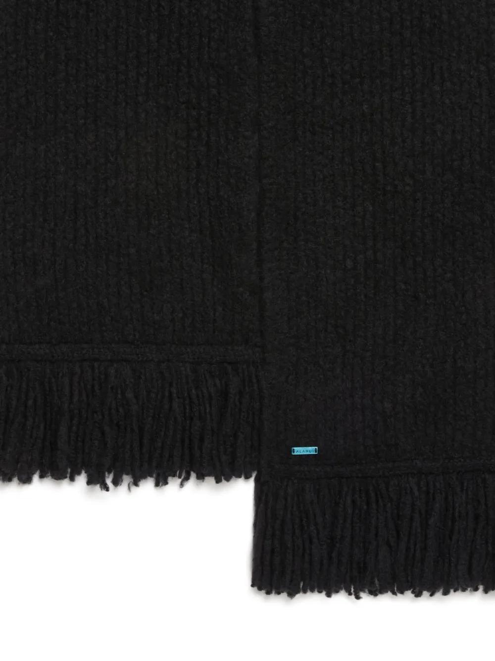 black cashmere-silk blend knitted construction logo plaque fringe detailing