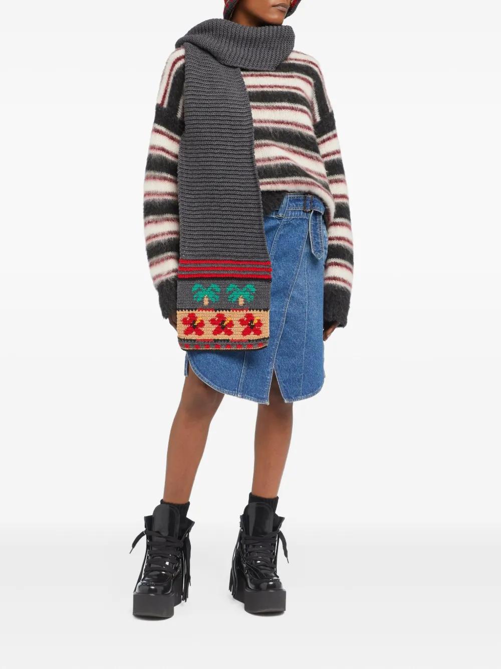 Alanui Hibiscus Bloom palm-tree wool scarf - Grey