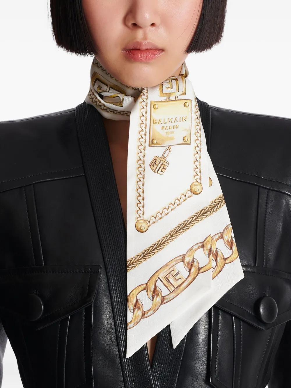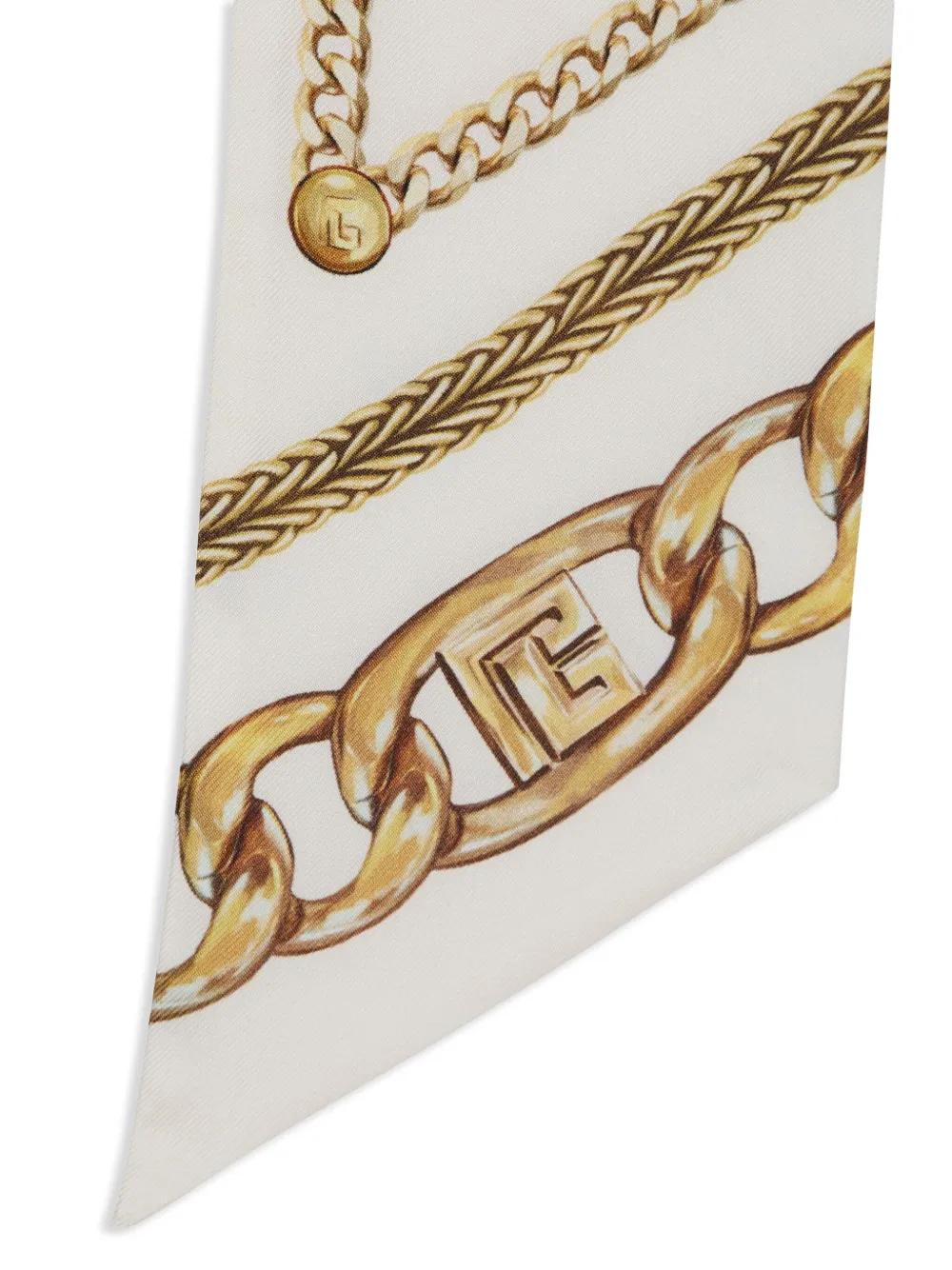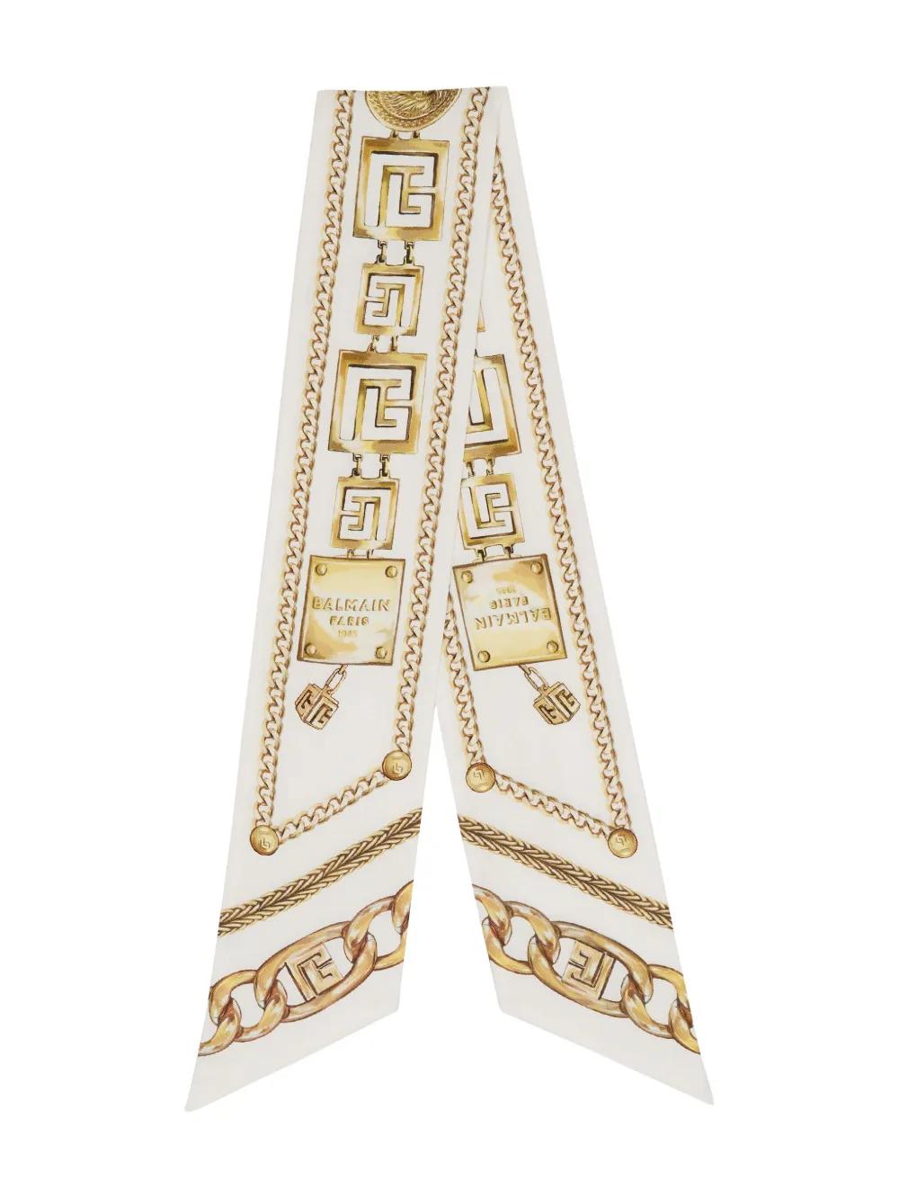 Balmain chain-print silk bandana - White