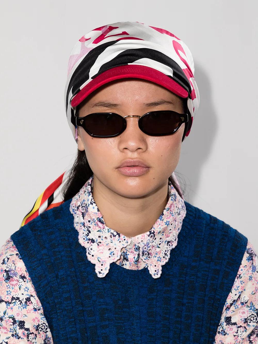 multicolour silk stripe trim slogan print logo print to the front finished edge