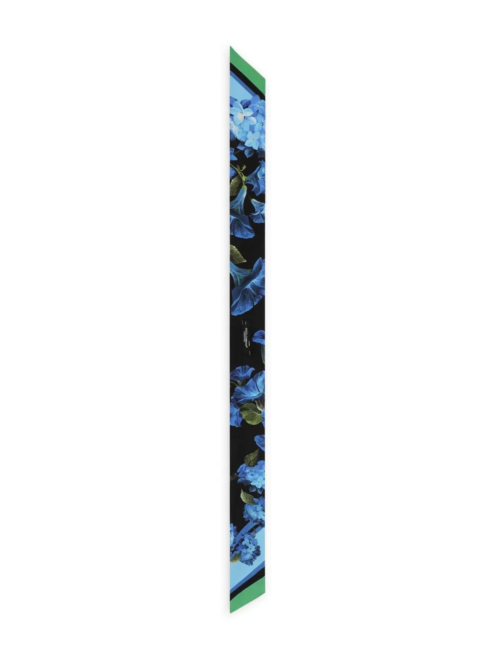 black/aqua blue/apple green silk contrasting border all-over floral print wraparound style