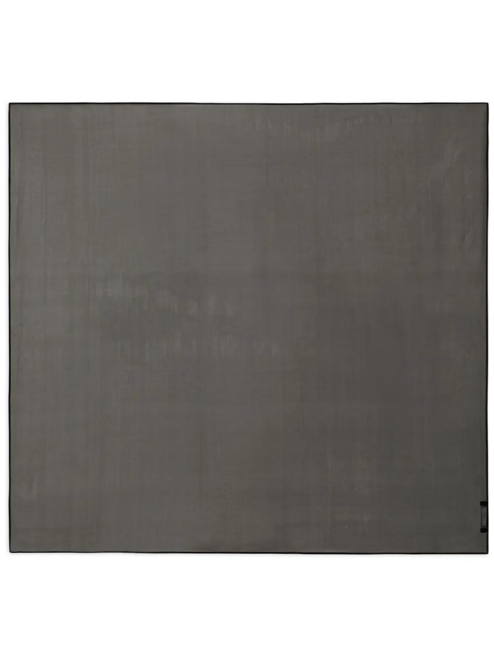 charcoal grey/black silk square shape contrasting border mini logo tag finished edge