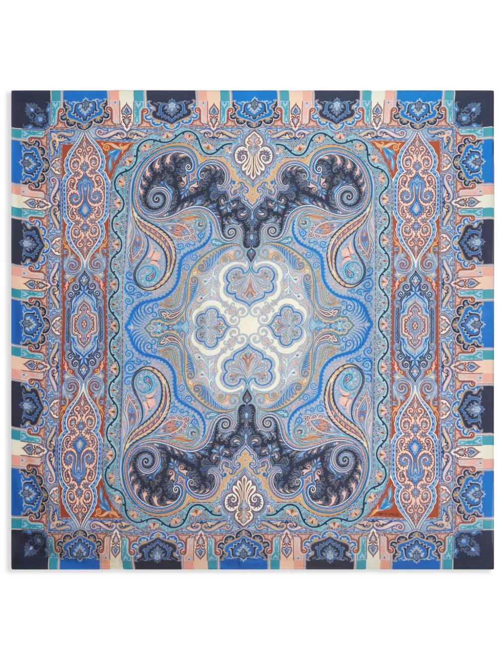 blue/multicolour cashmere-silk blend paisley print square shape wraparound style finished edge