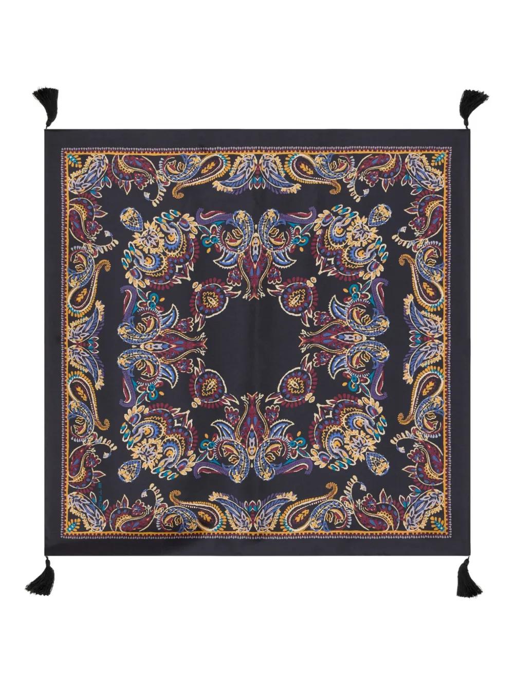 black paisley motif tassel detail square shape silk
