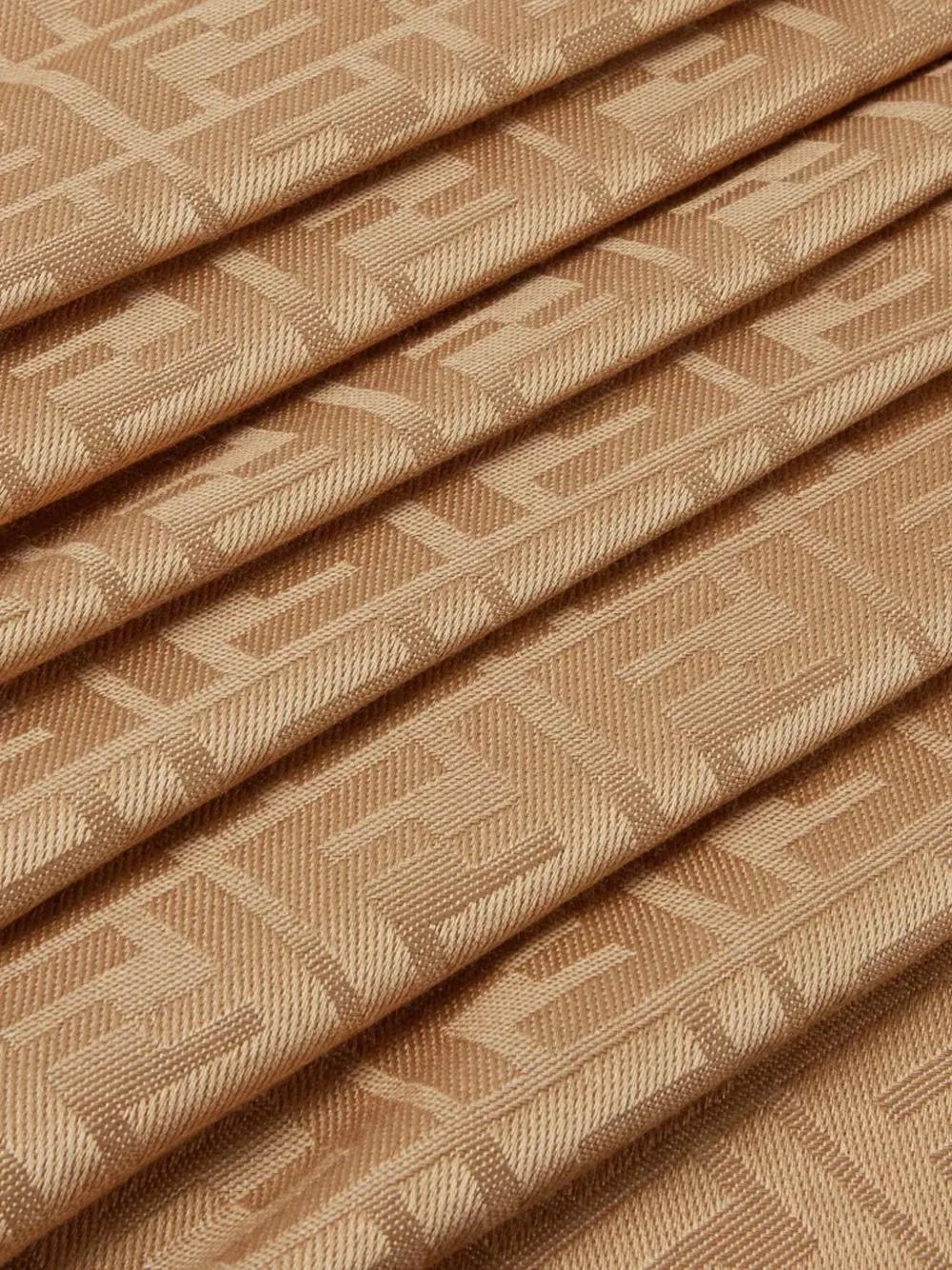 brown FF logo pattern silk-wool blend fringed edges tone-on-tone design