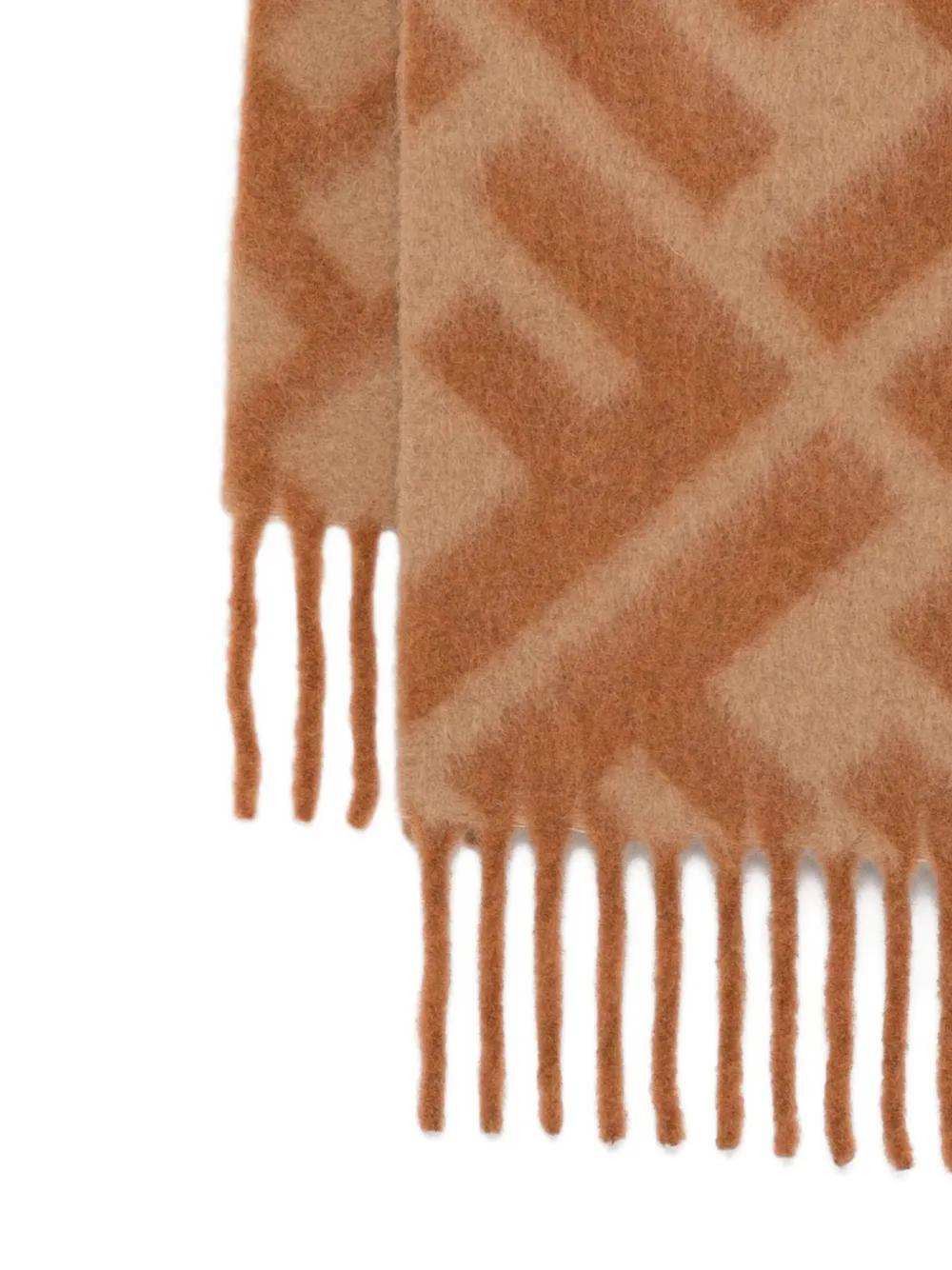 burgundy red/multicolour alpaca wool blend striped pattern logo intarsia fringed edge rectangular shape