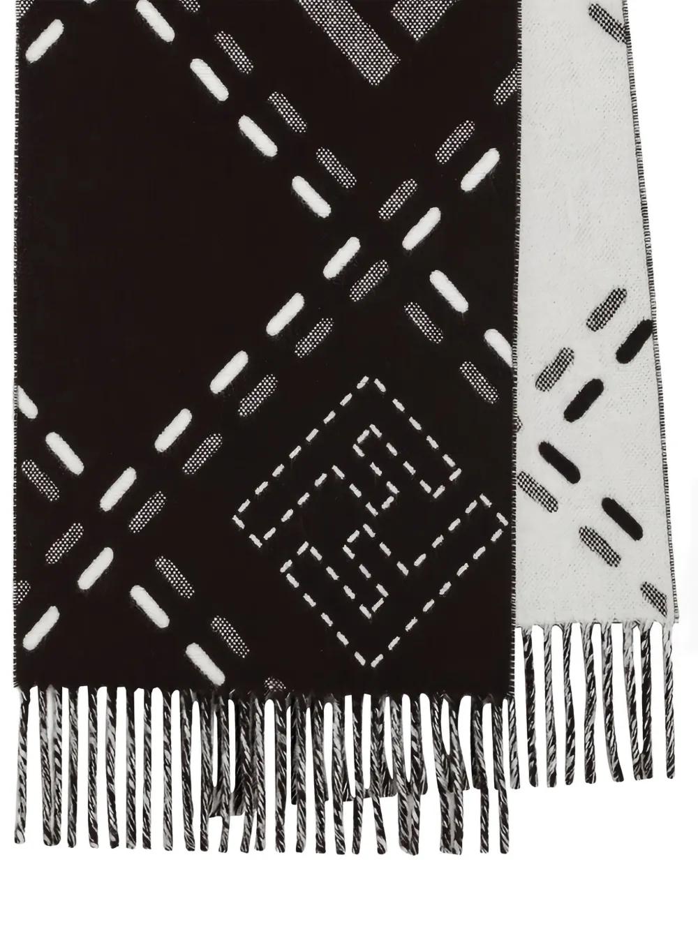 burgundy red/multicolour alpaca wool blend striped pattern logo intarsia fringed edge rectangular shape