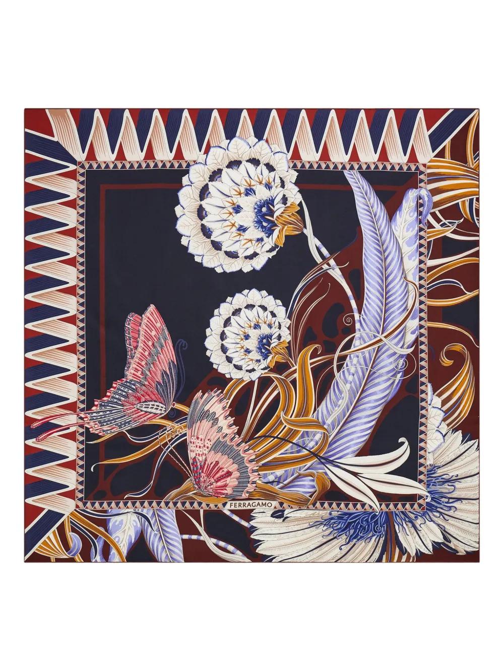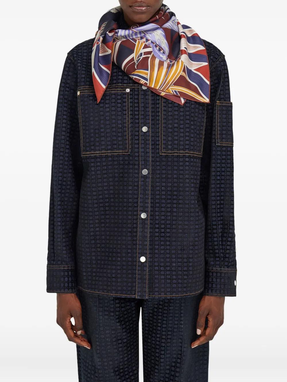 black/blue skull print frayed edge striped border lightweight construction wraparound style