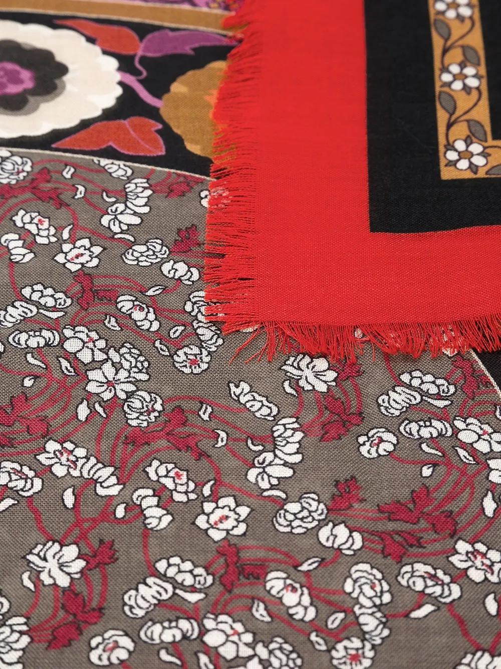 Multicolour cashmere-silk blend floral print scarf from Salvatore Ferragamo featuring frayed edges.