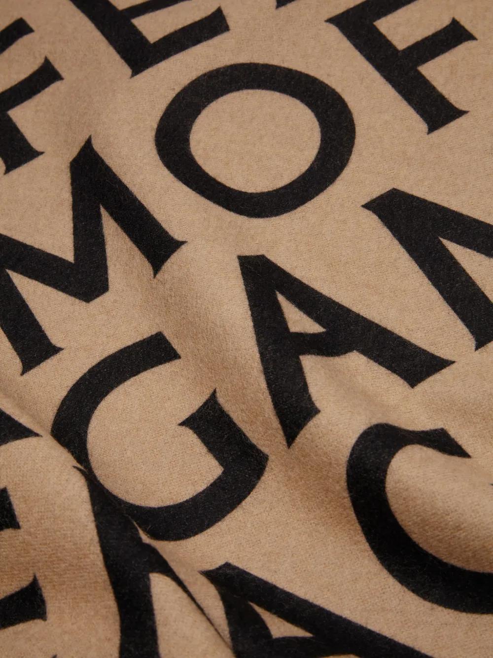 black/camel brown/beige wool-cashmere blend intarsia-knit logo fringe detailing wraparound style
