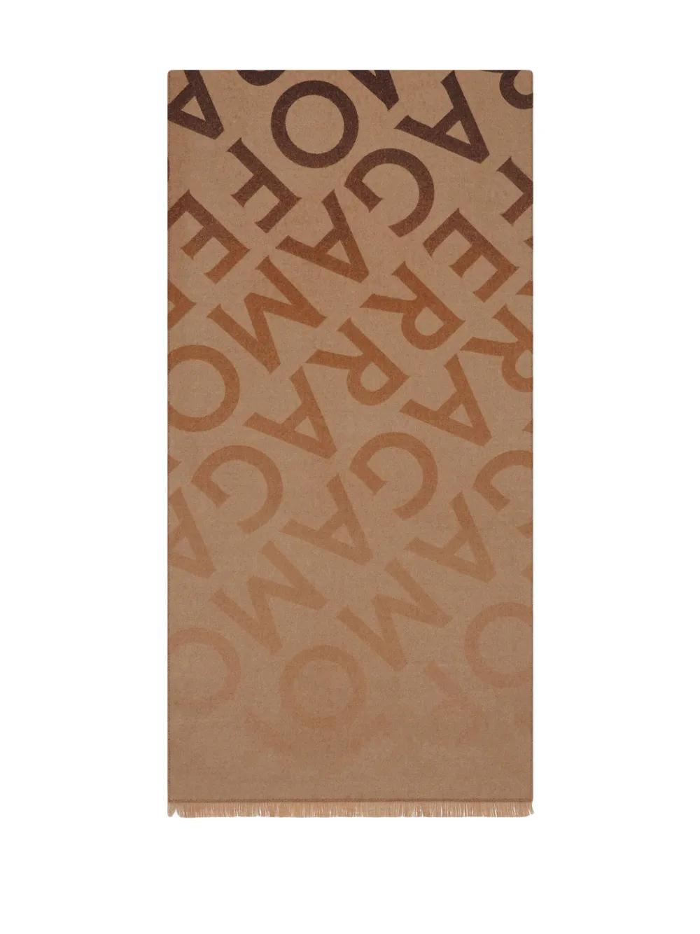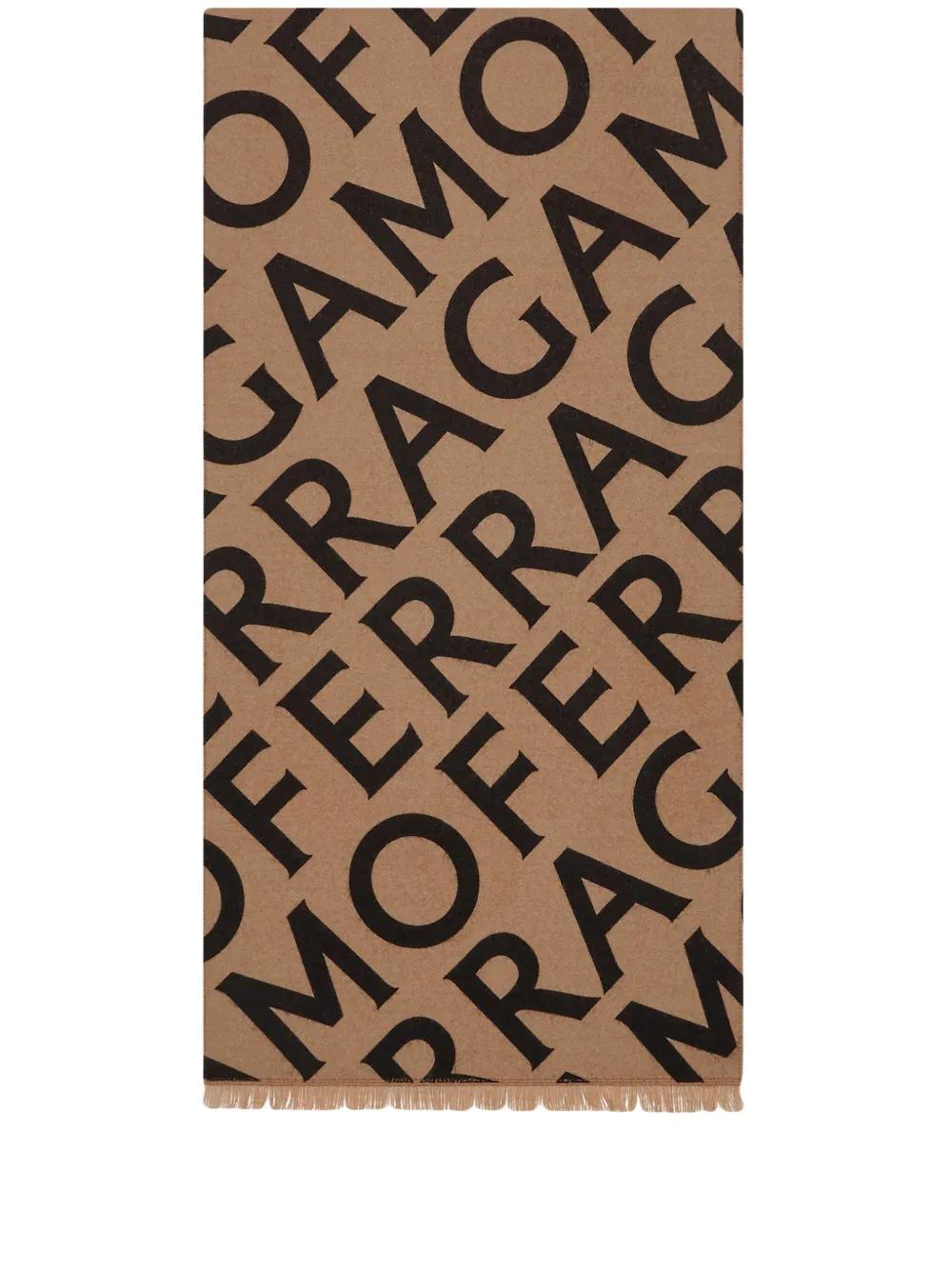 Ferragamo logo intarsia-knit fringed scarf - Neutrals