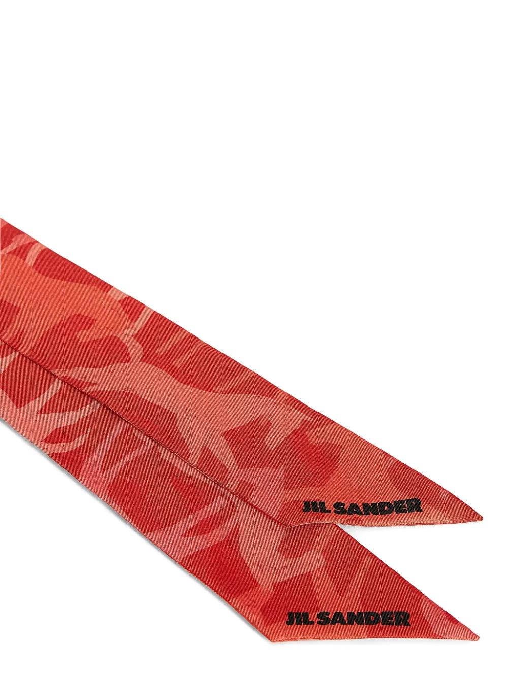 red knitted debossed horse symbol logo detail fringed edge leather patch