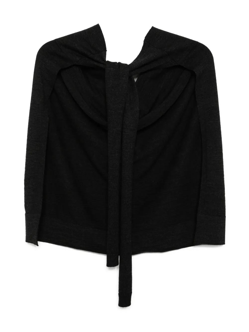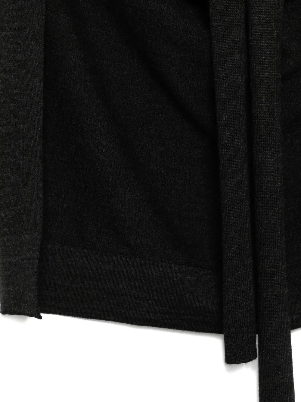 dark grey fine knit tie strap ribbed edge