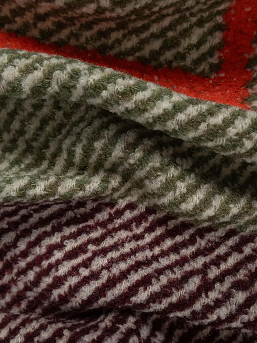 burgundy red/multicolour alpaca wool blend striped pattern logo intarsia fringed edge rectangular shape
