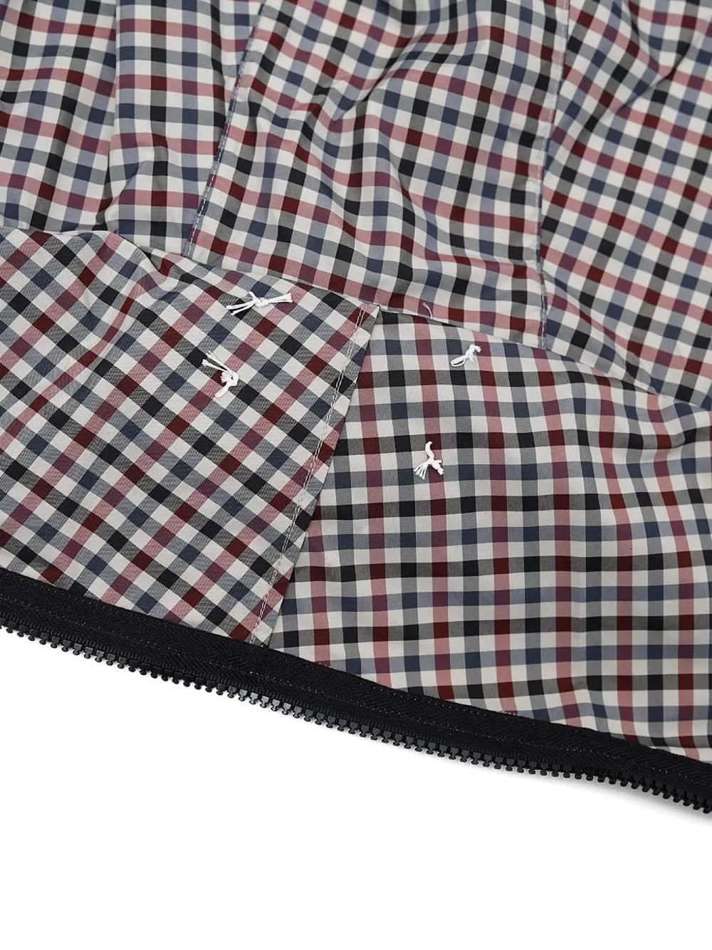 light beige and multicolour checked pattern zip detail concealed hood