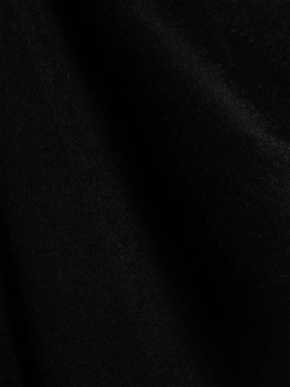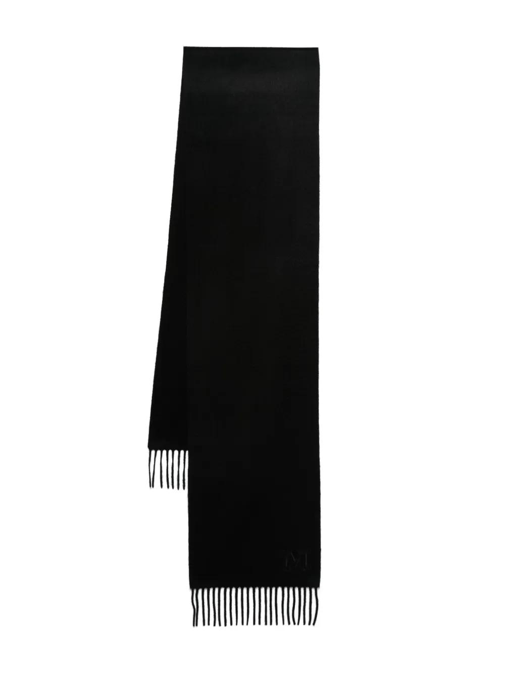 black cashmere rectangle shape embroidered logo to the front fringed edge