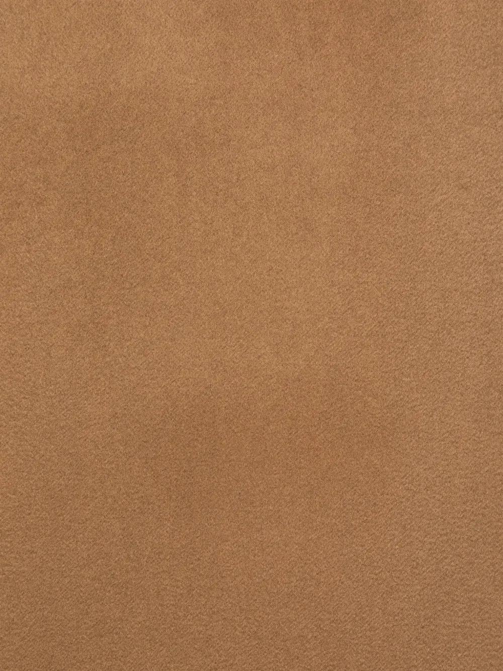caramel brown cashmere rectangle shape embroidered logo to the front fringed edge