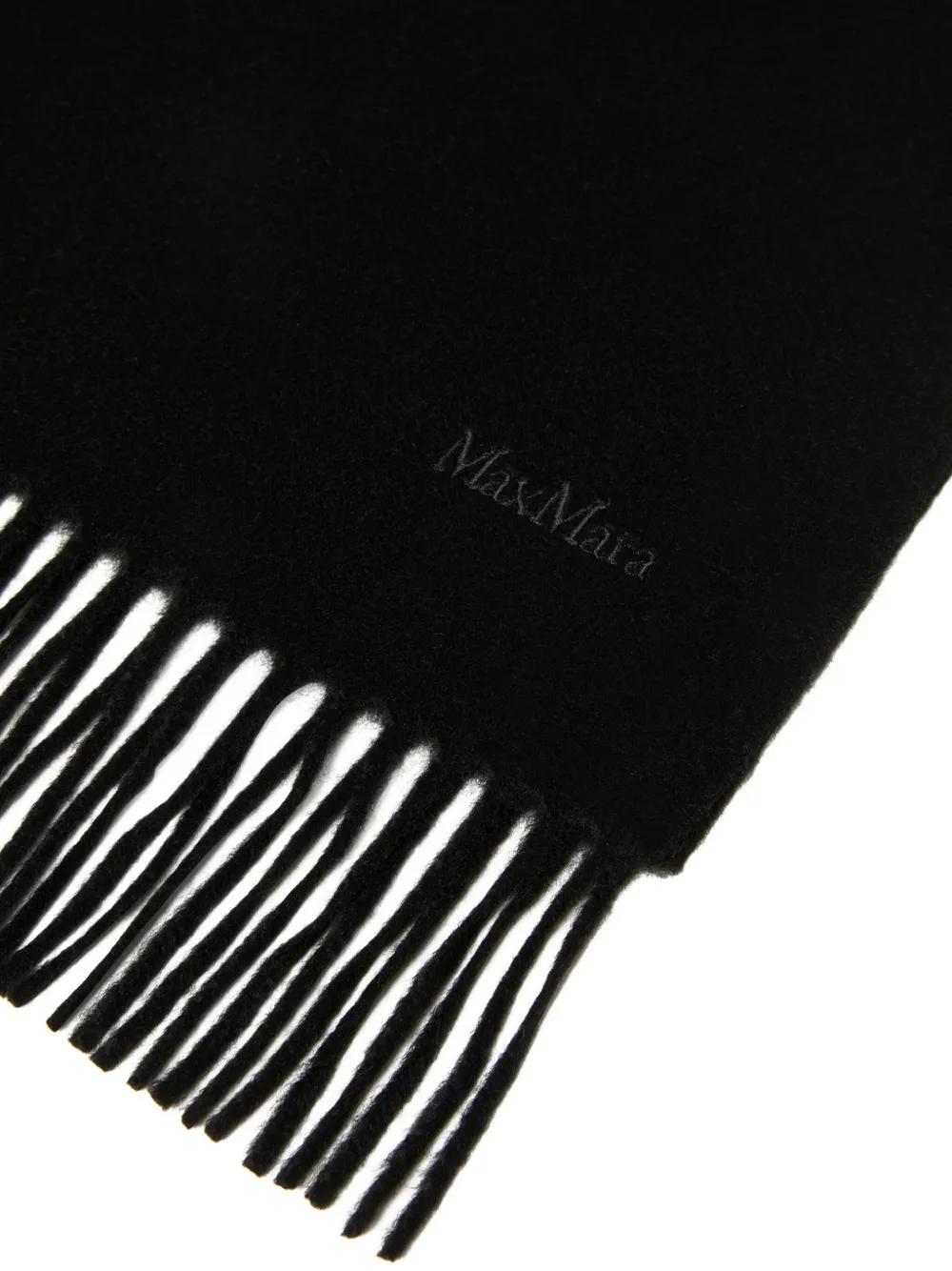 light brown virgin wool fine knit logo print to the front fringed edge rectangle shape wraparound style