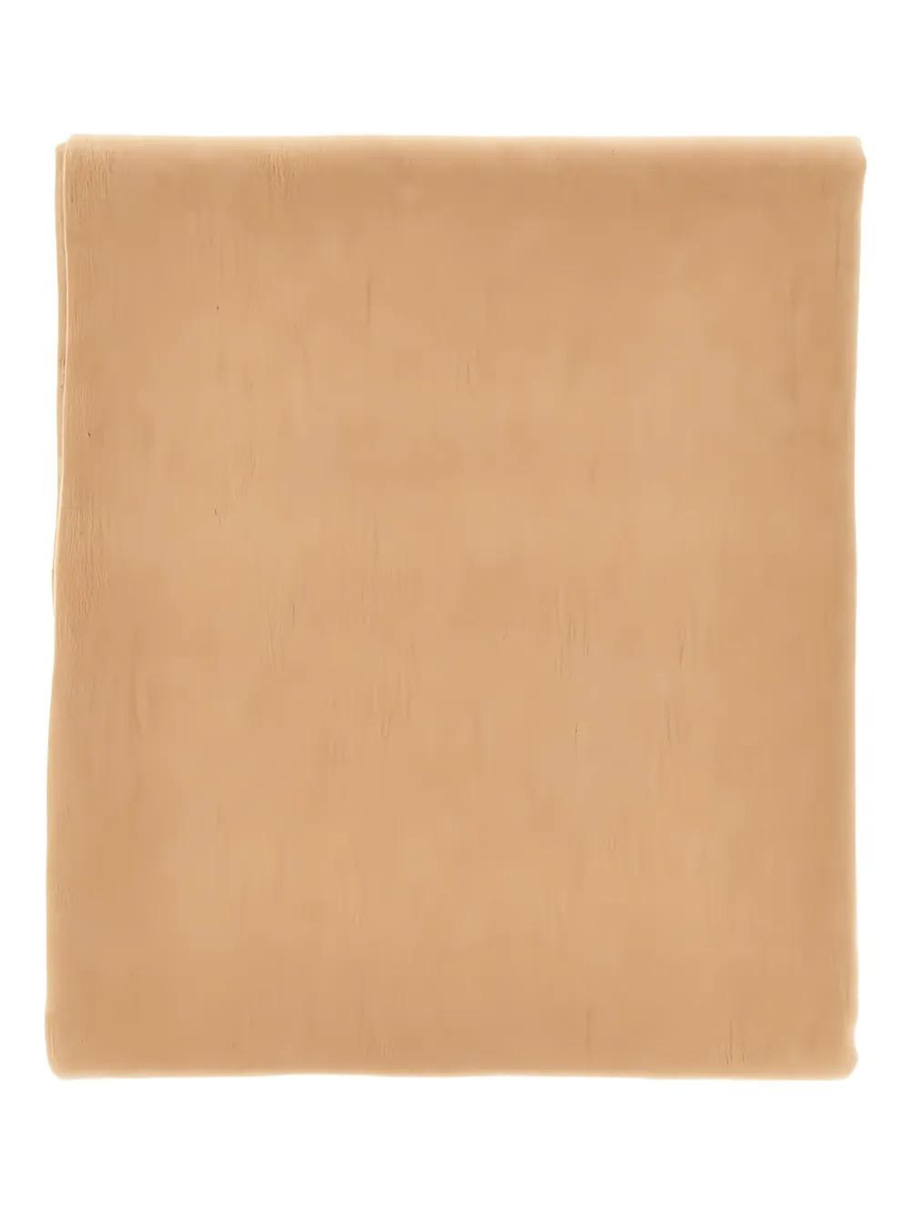embroidered-logo scarf from Max Mara (VIP) featuring embroidered logo to the front, wraparound style, tasselled edge, camel brown and cashmere.