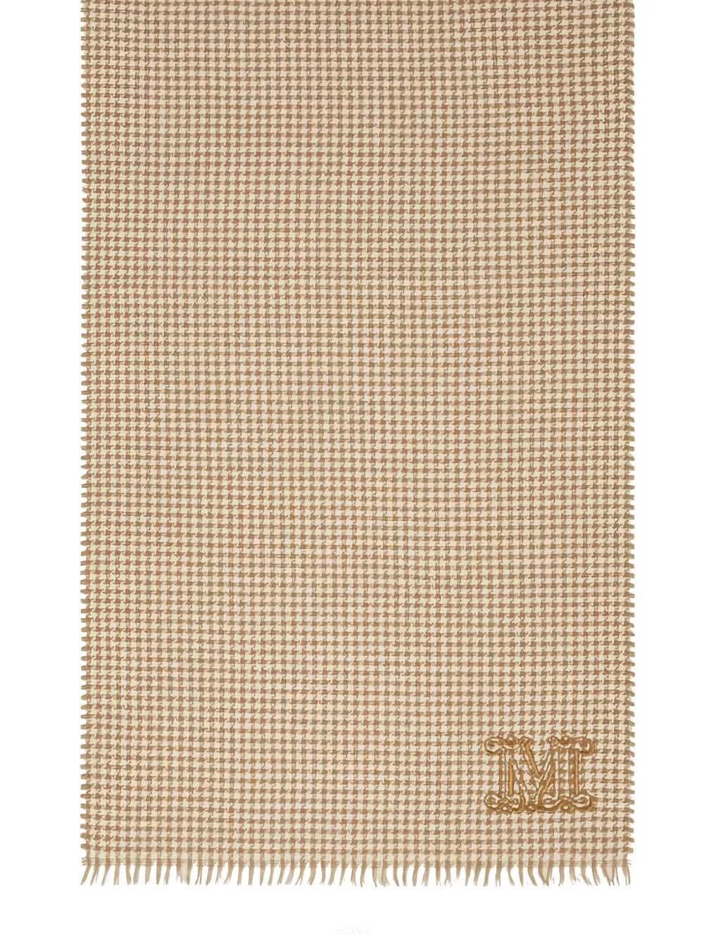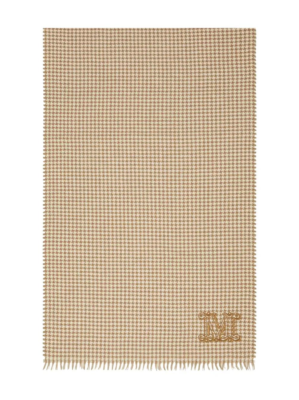 brown houndstooth pattern fringed edges embroidered monogram wool