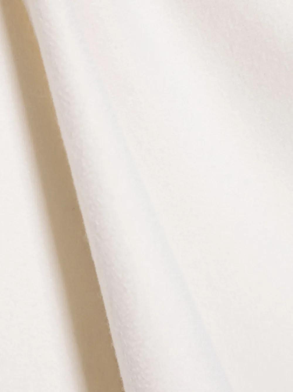 ivory white cashmere rectangle shape embroidered logo to the front fringed edge