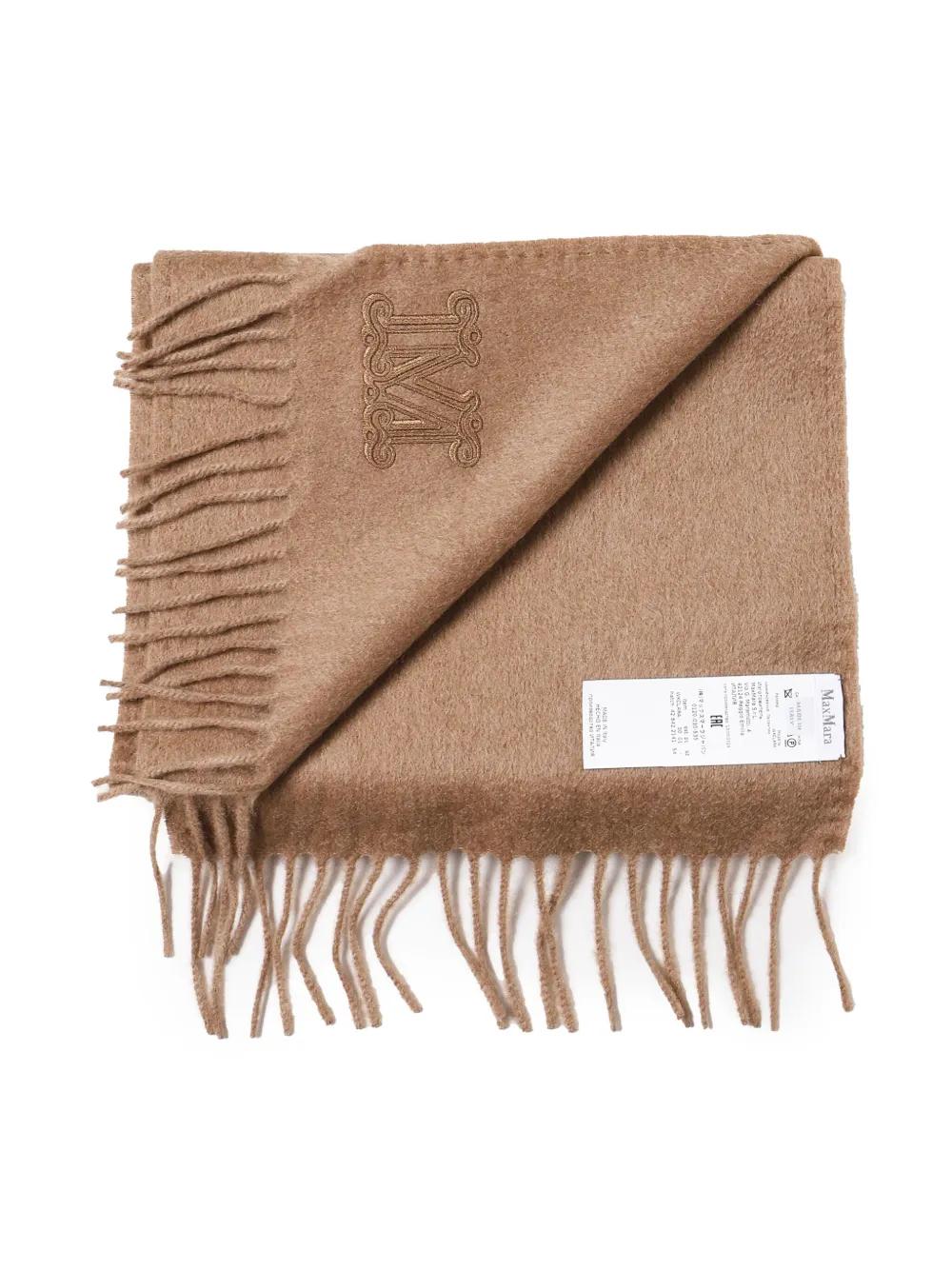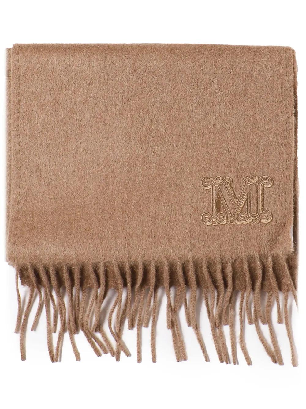 Max Mara monogram-embroidered wool scarf - Brown