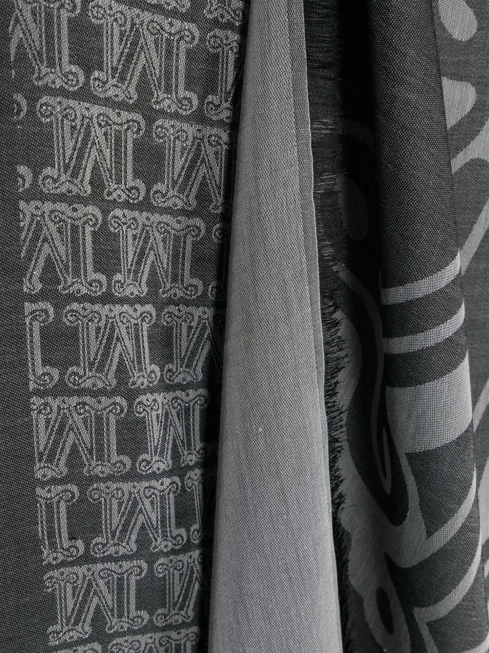 grey silk-cotton blend tonal design lightweight construction monogram jacquard wraparound style square shape monogram jacquard frayed edge