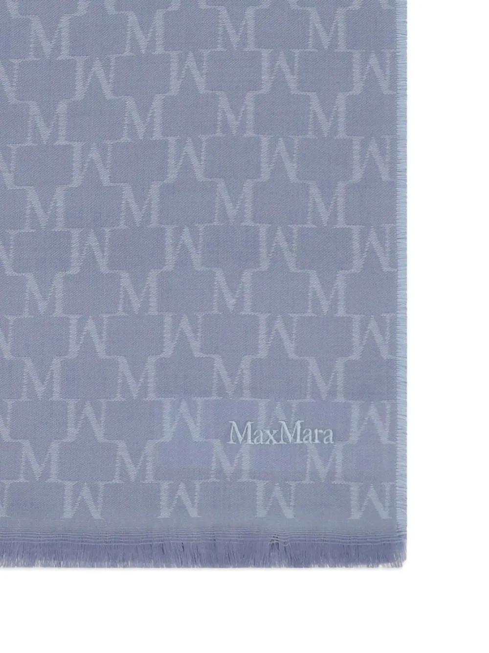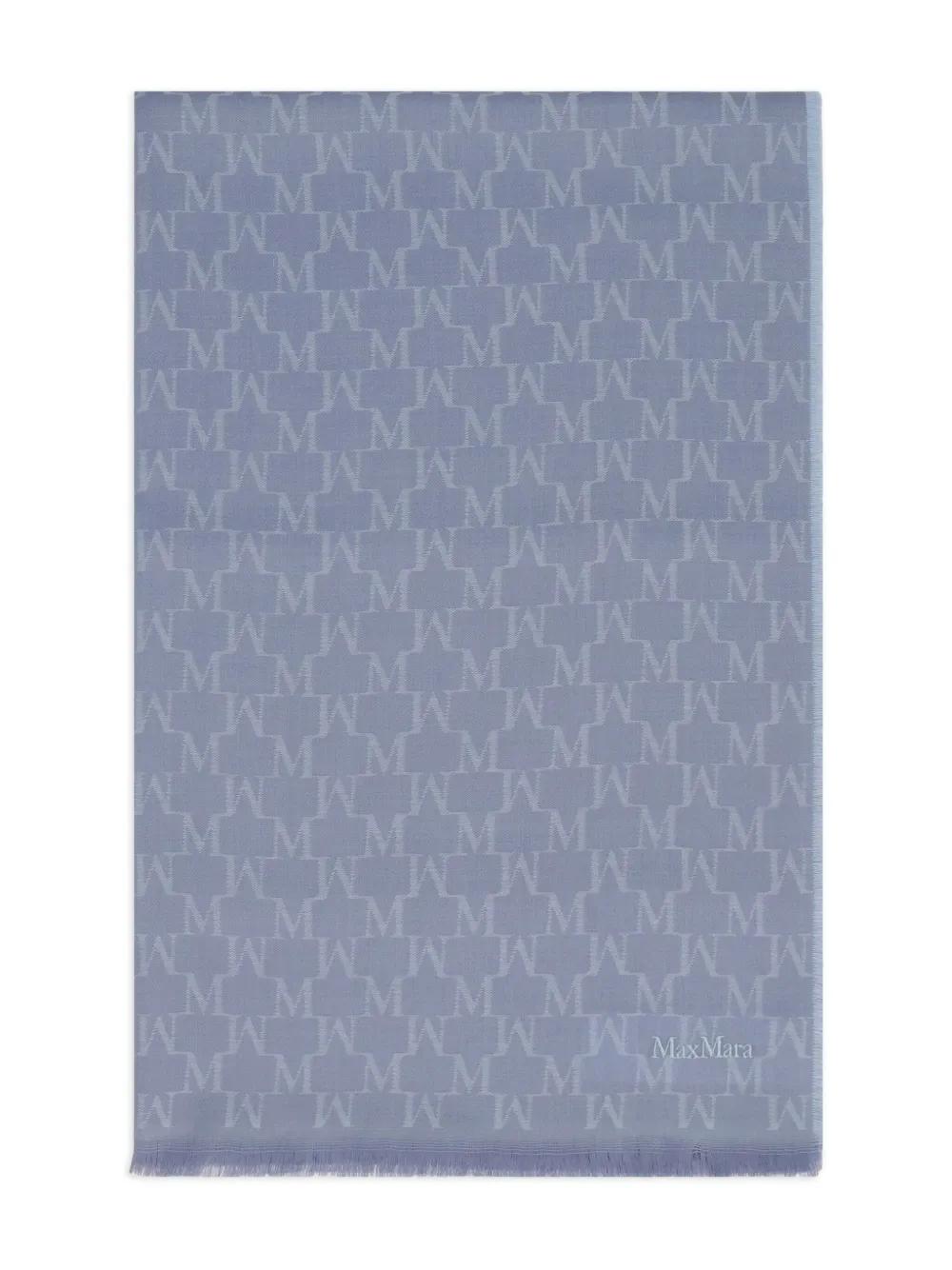 blue tonal M monogram all-over jacquard pattern fringed edges wool rectangular shape