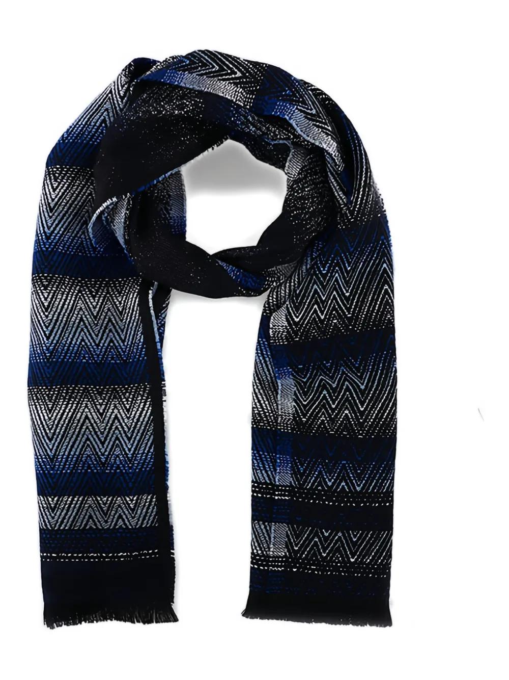 blue chevron-pattern fringed-edge 38cm x 180cm